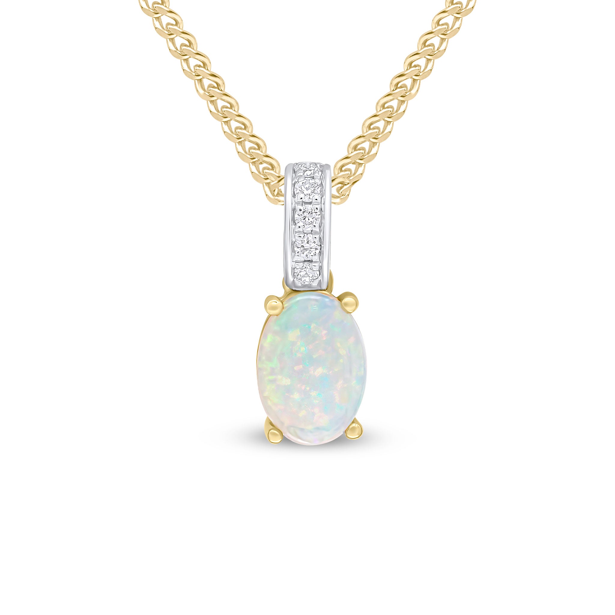 18CT Yellow Gold Oval Opal & Diamond Line Pendant 7x5mm