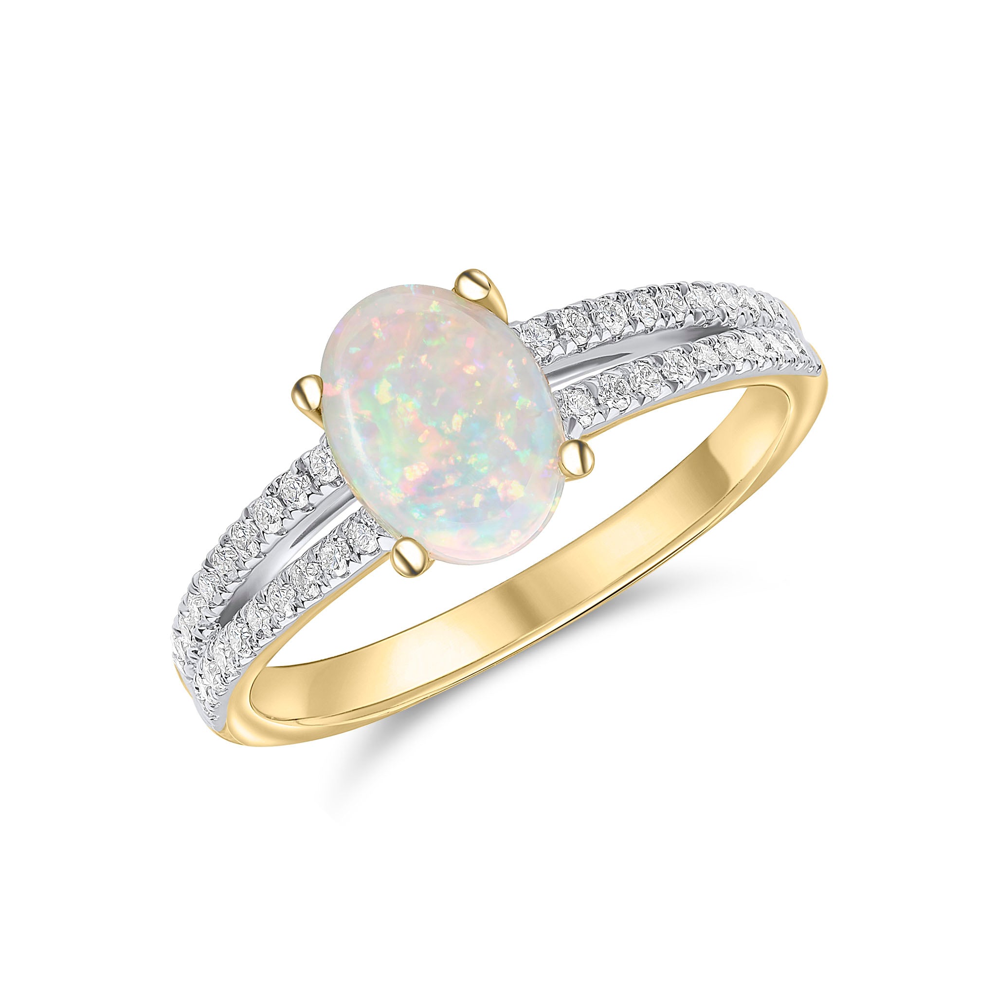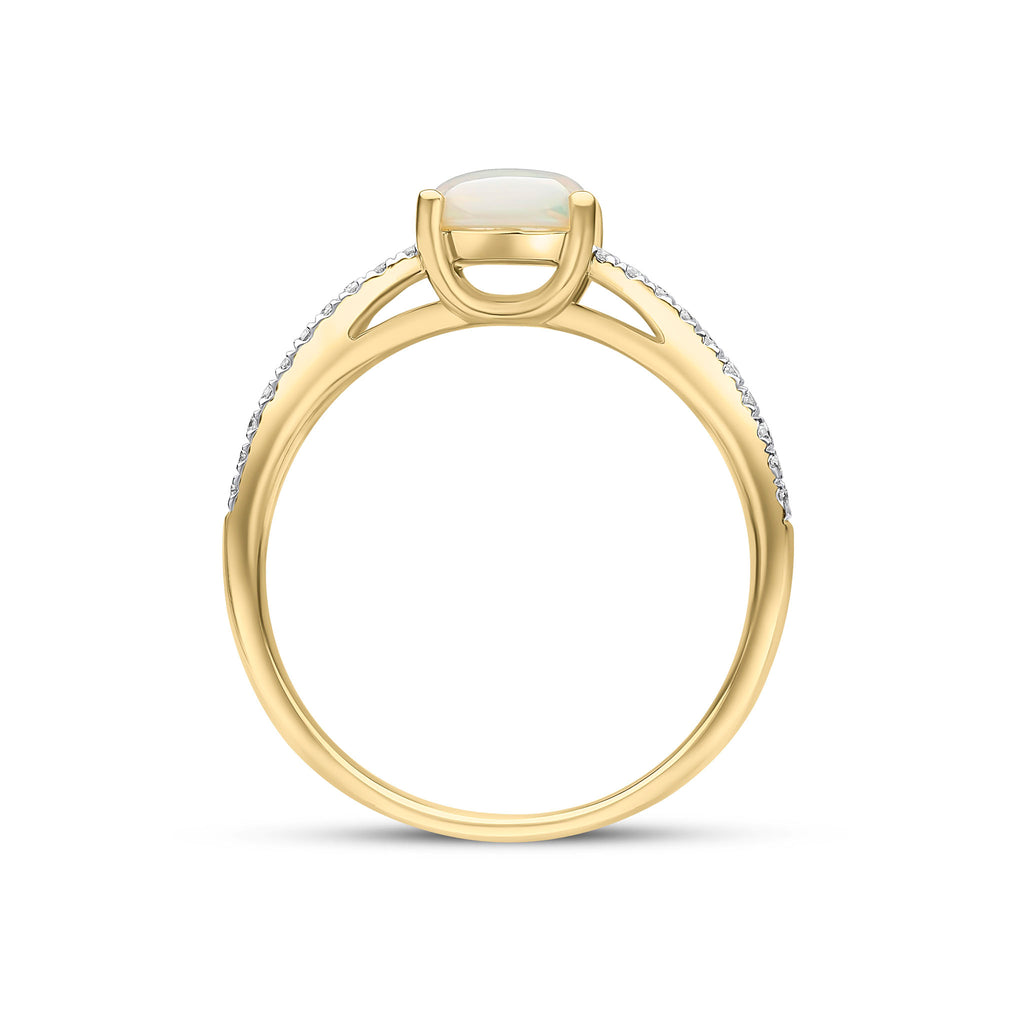18CT Yellow Gold Oval Opal Ring with Diamond Set Split Shoulders 8x6mm