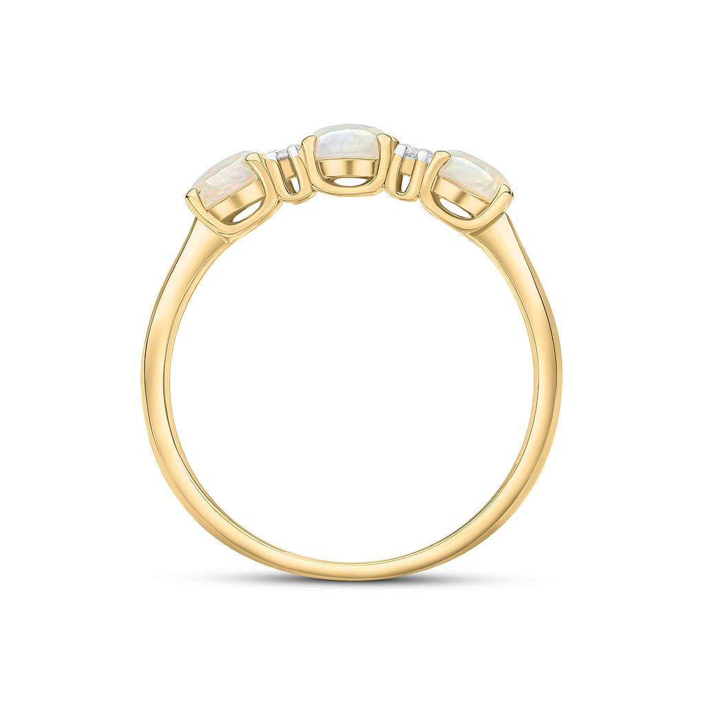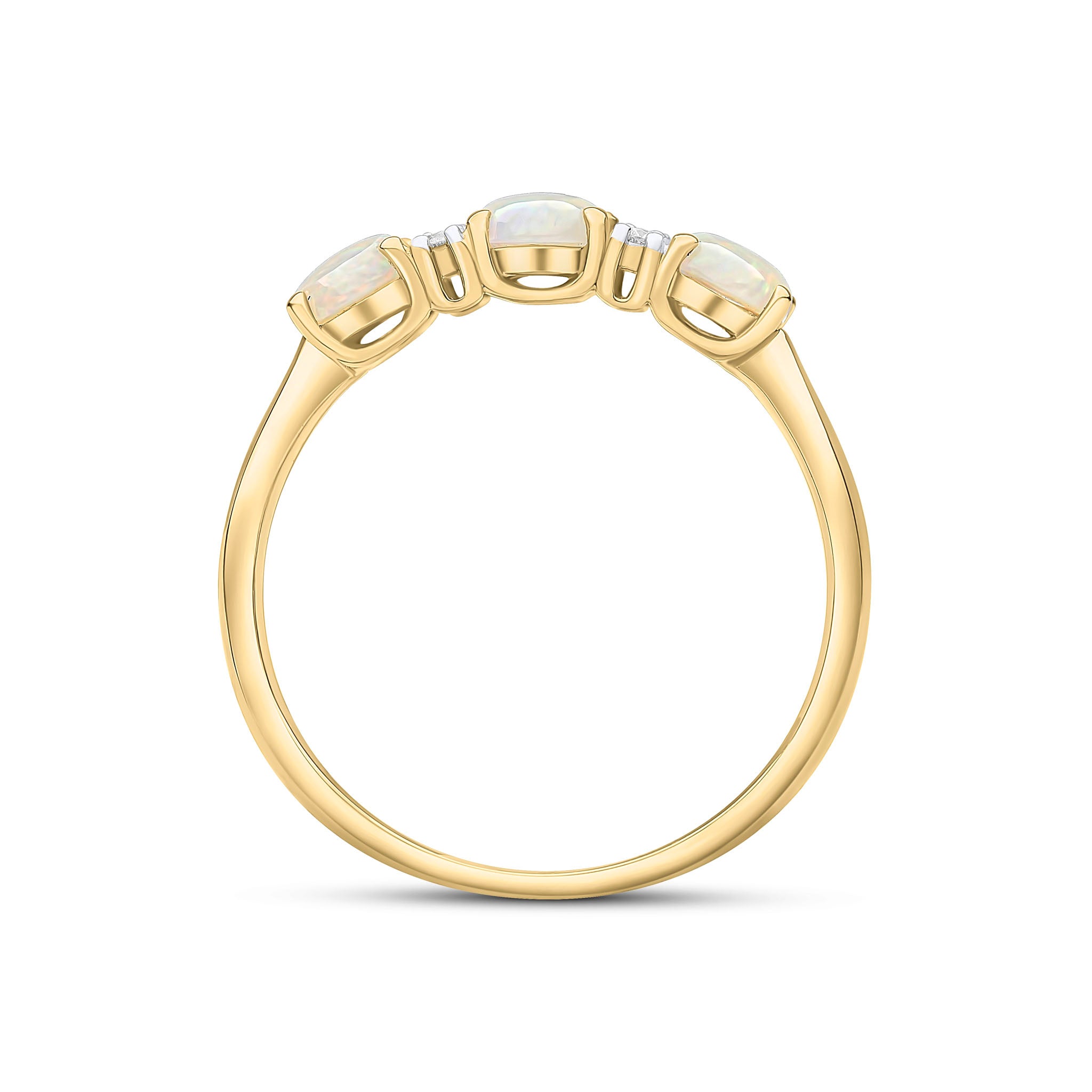 18CT Yellow Gold Oval Opal & Round Diamond 9 Stone Ring 6x4mm