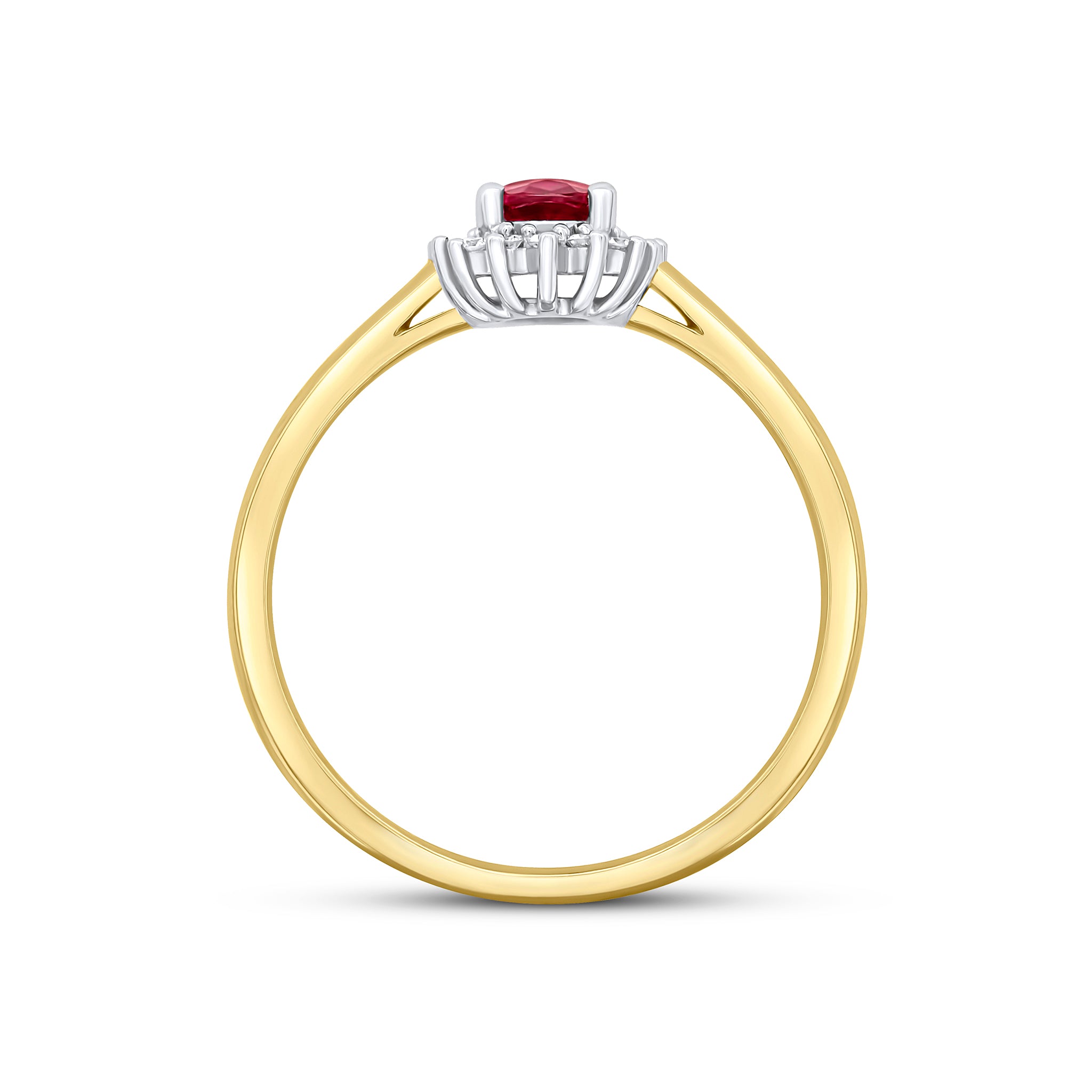 18CT Yellow Gold Oval Ruby & Round Diamond Claw Set Cluster Ring 6x4mm