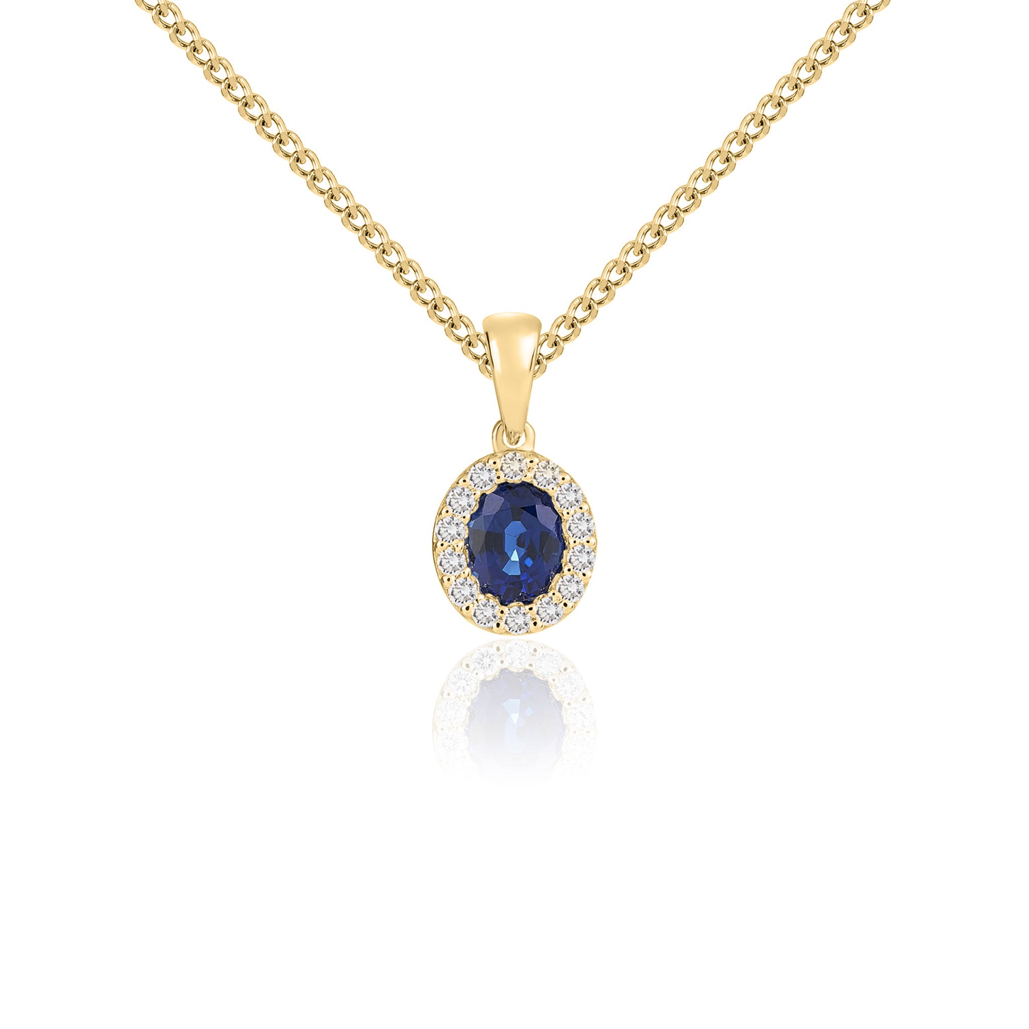 18CT Yellow Gold Oval Sapphire & Diamond Cluster Pendant 5x4mm