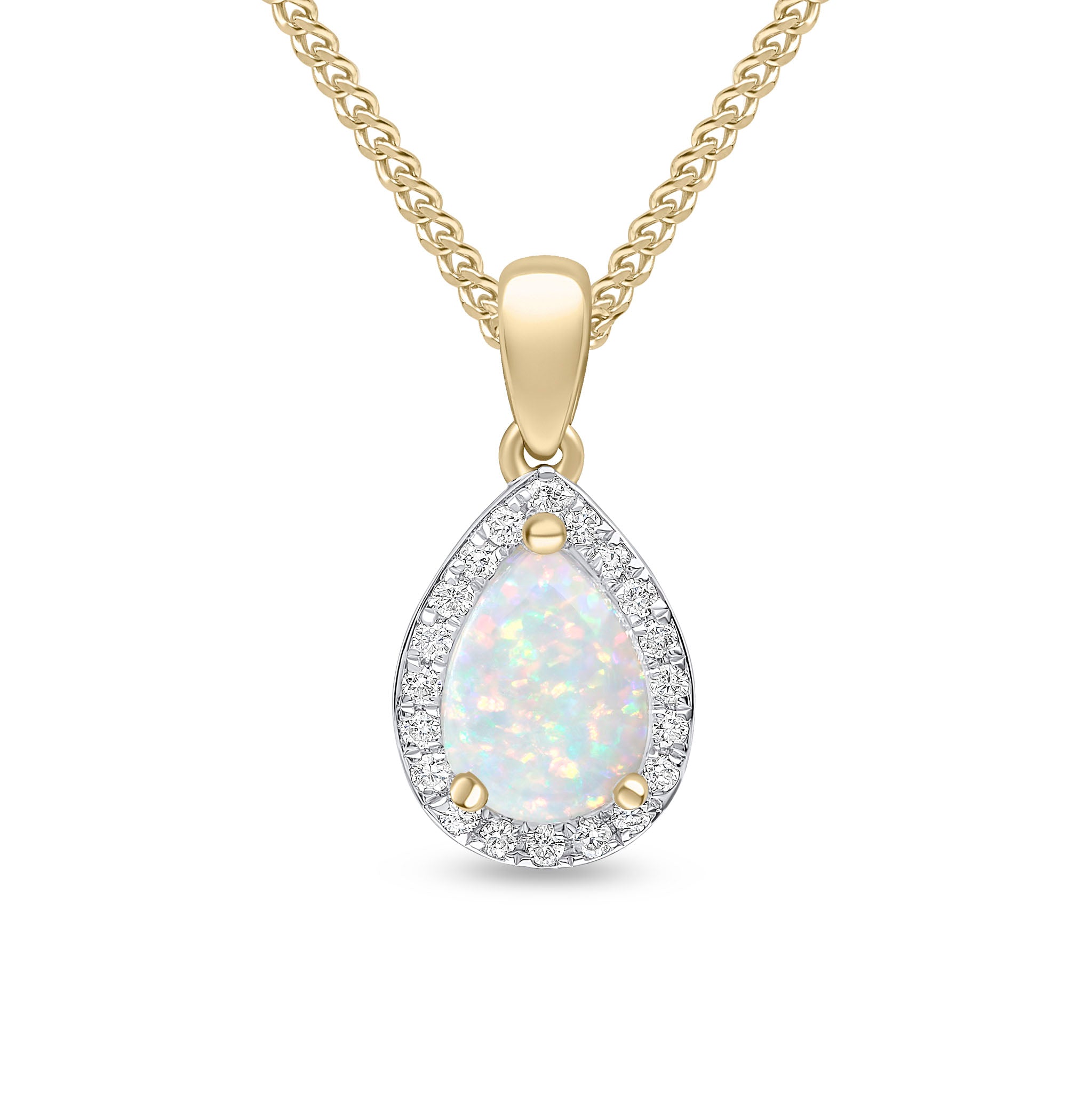 18CT Yellow Gold Pear Shaped Opal & Grain Set Diamond Cluster Pendant 7x5mm
