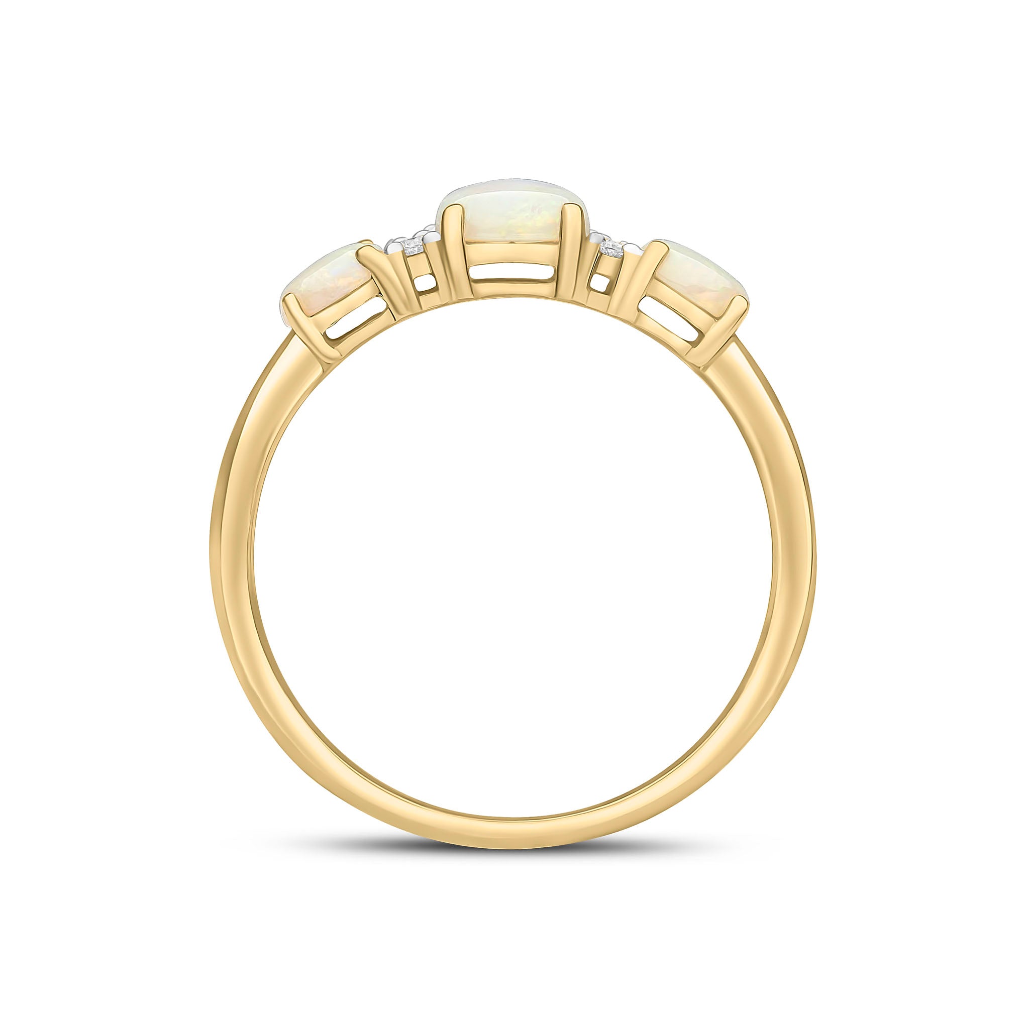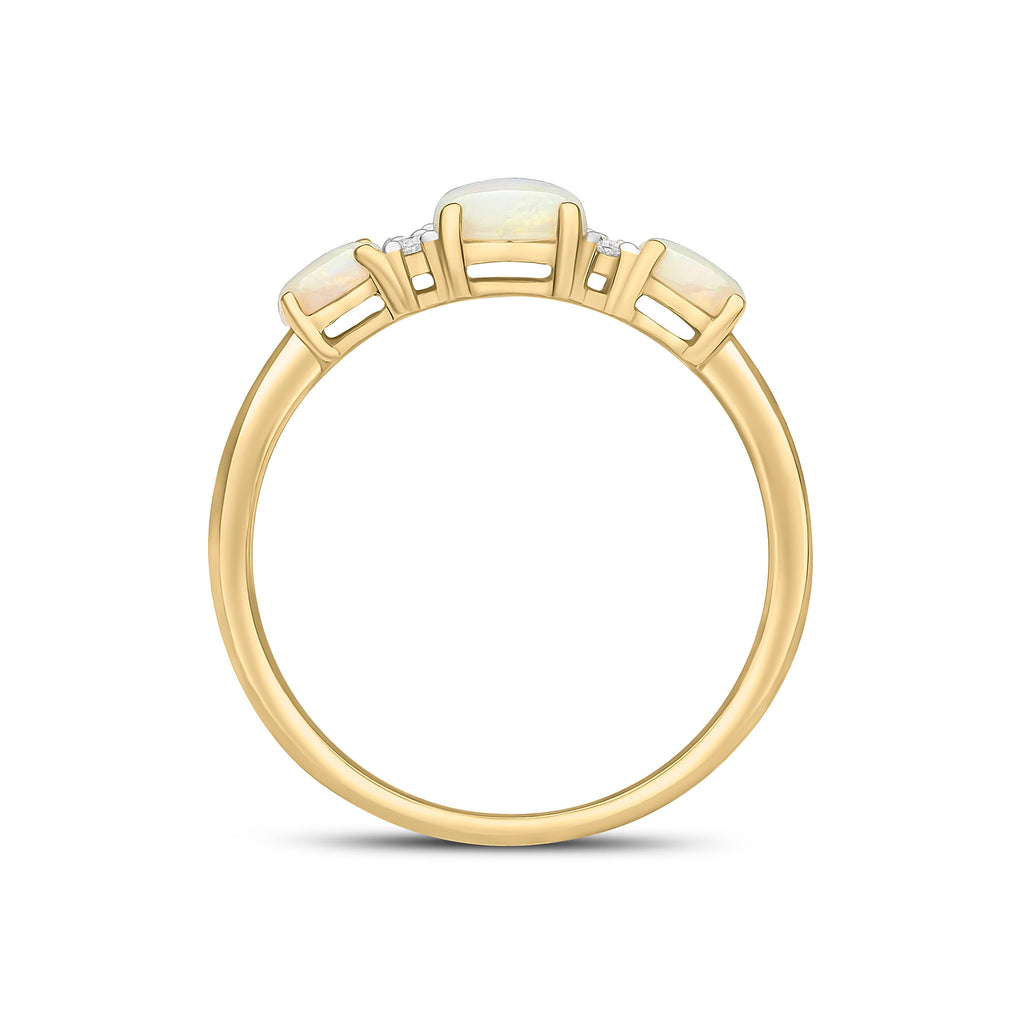18CT Yellow Gold Round Opal & Diamond 7 Stone Claw Ring
