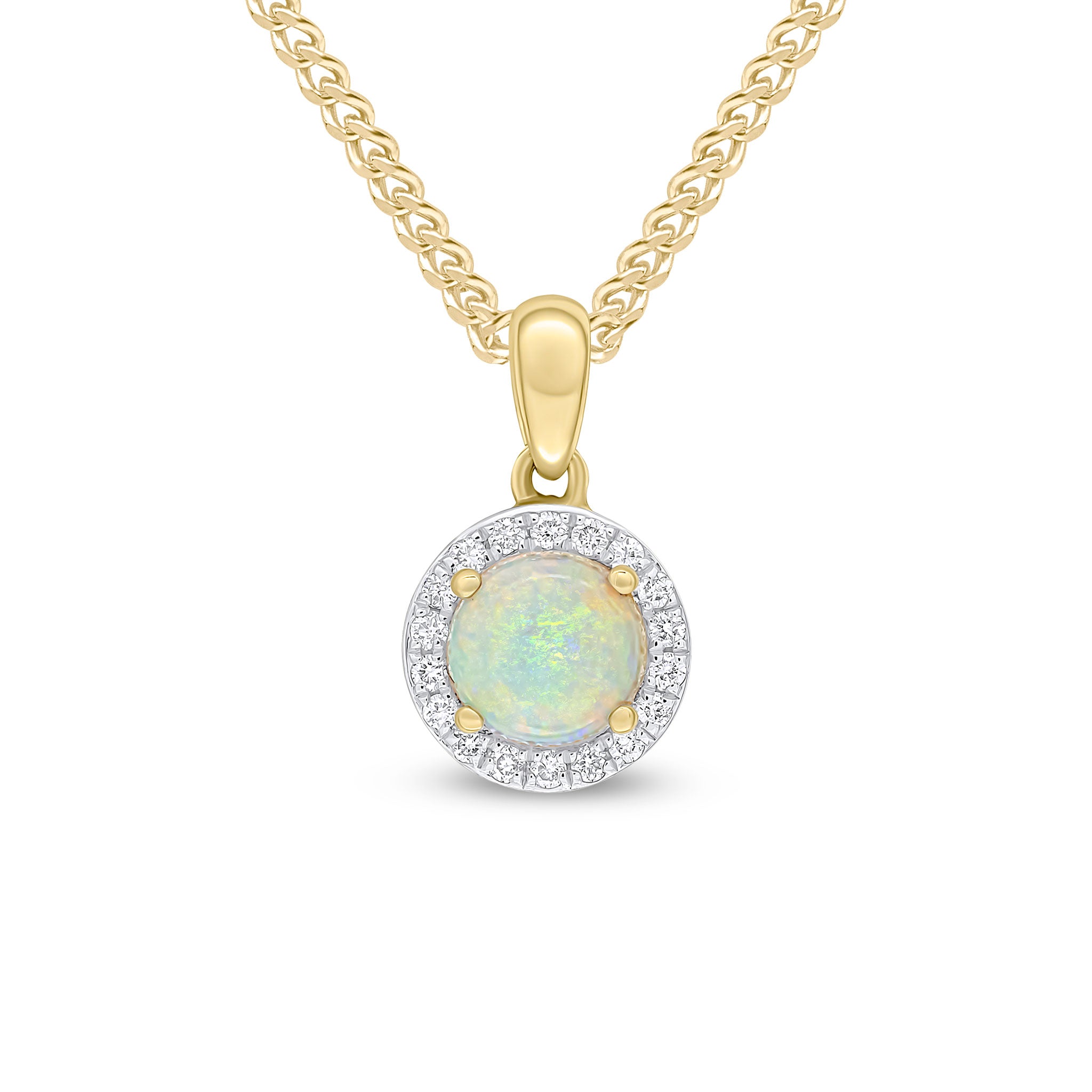 18CT Yellow Gold Round Opal & Diamond Claw Set Cluster Pendant 5.5mm