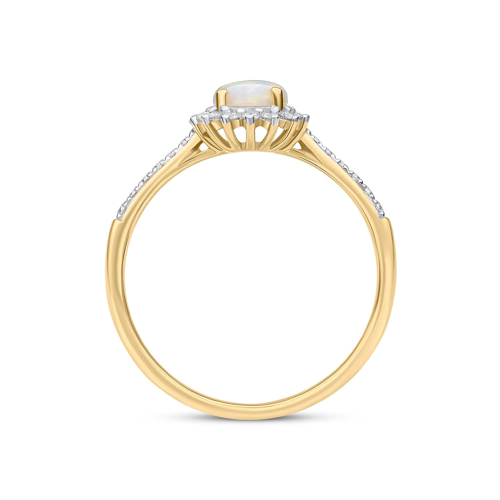 18CT Yellow Gold Round Opal & Diamond Claw Set Cluster Ring with Diamond Set Shoulders 5mm