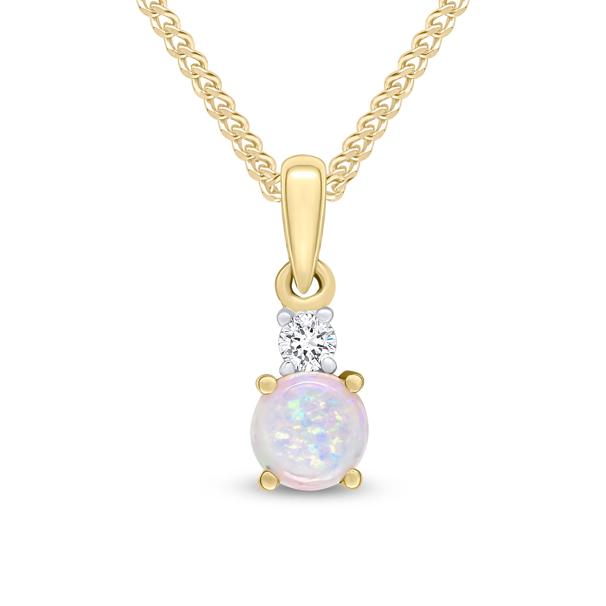 18CT Yellow Gold Round Opal & Diamond Two Stone Pendant 4.5mm