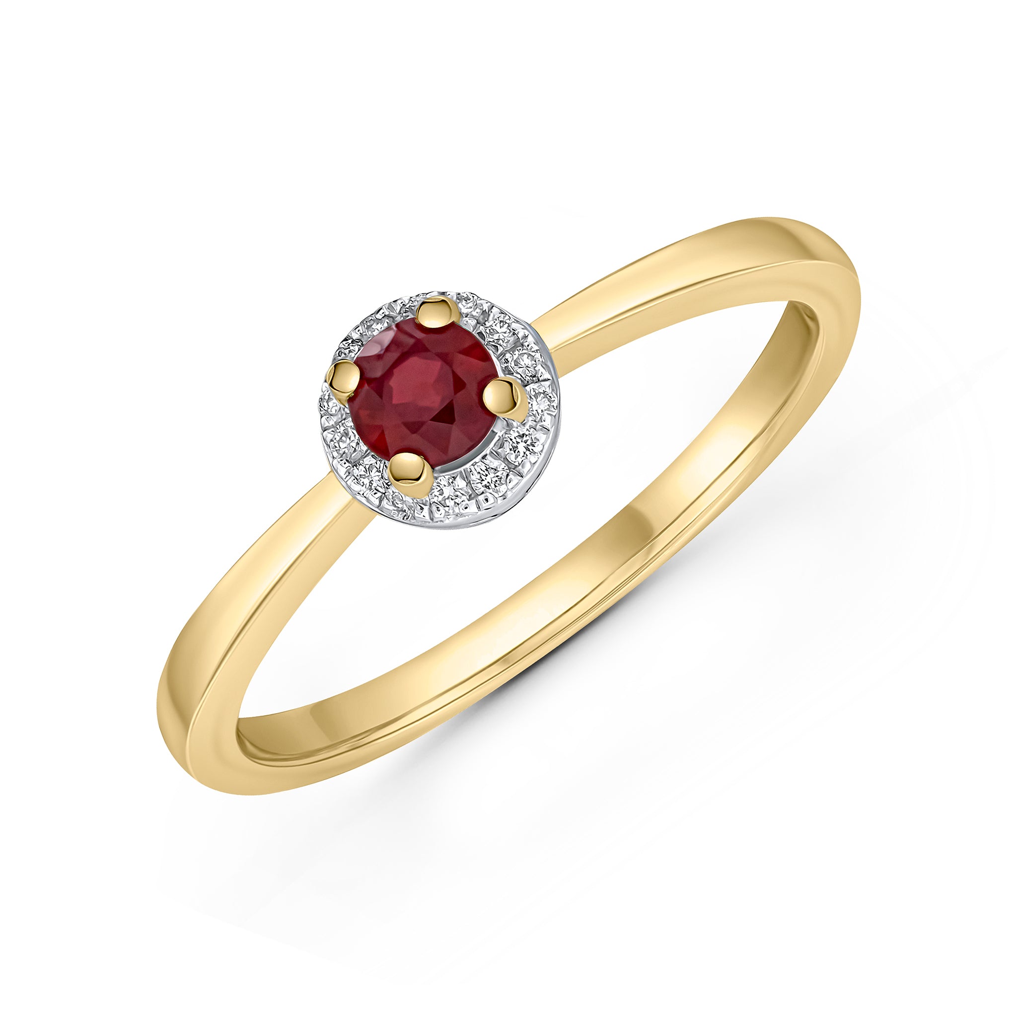 18CT Yellow Gold Round Ruby & Diamond Claw Set Cluster Ring 3.5mm