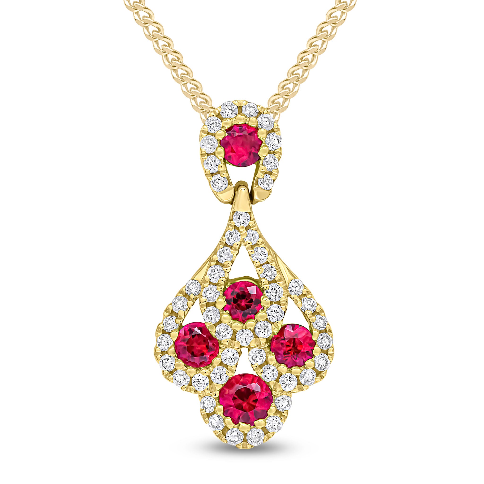 18CT Yellow Gold Round Ruby & Diamond Peacock Pendant