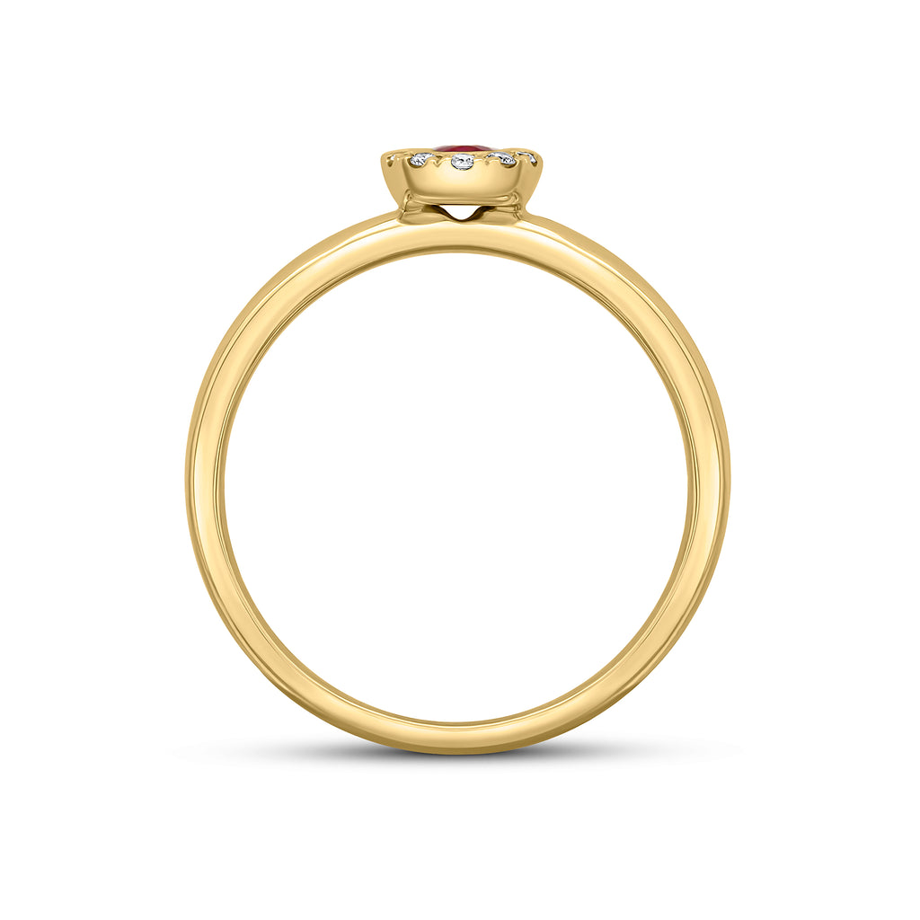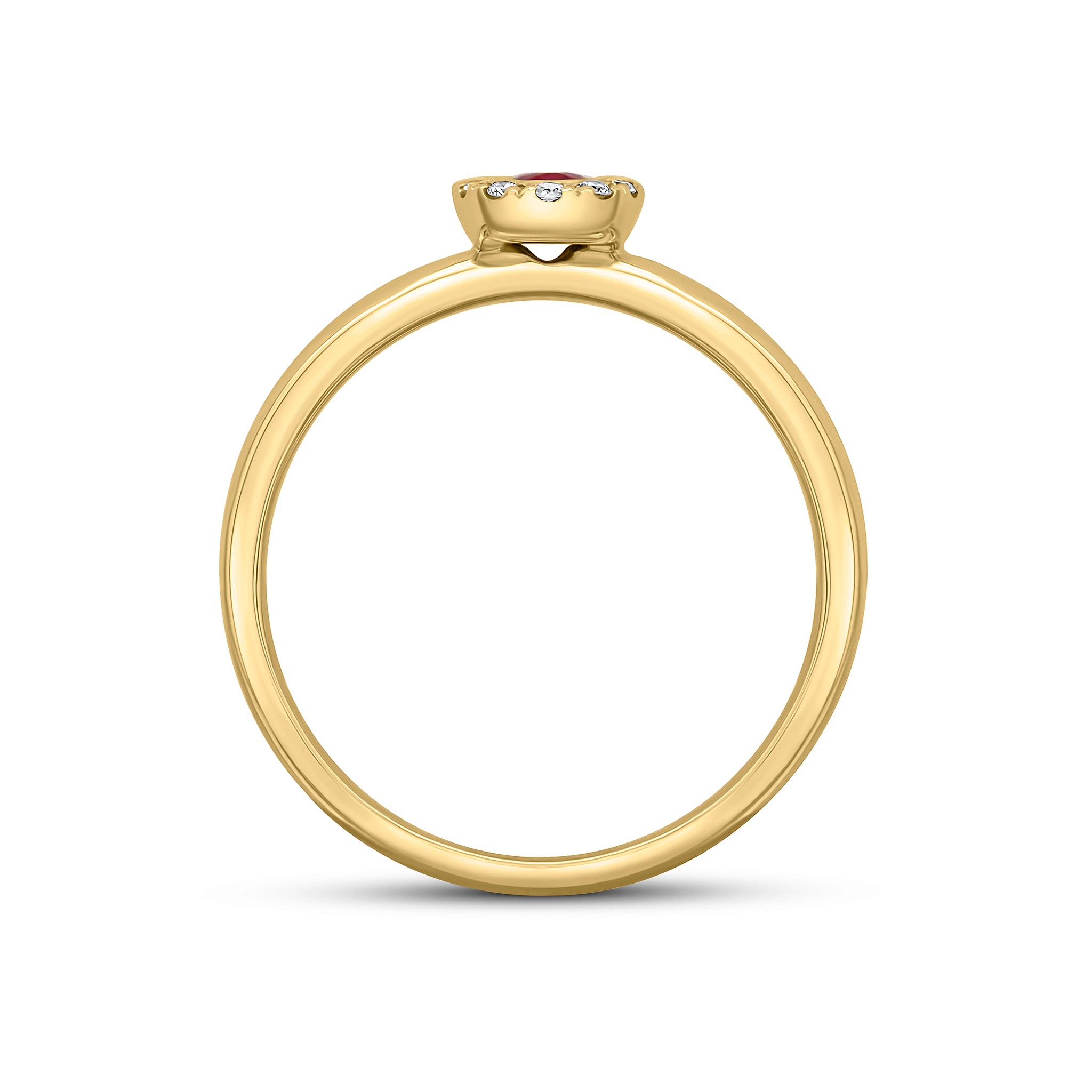 18CT Yellow Gold Rubover Oval Ruby & Round Grain Set Diamond Ring 5x3mm