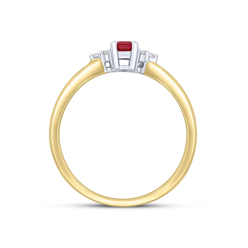18CT Yellow & White Gold Octagonal Ruby & Round Diamond Trefoil Ring 5x3mm