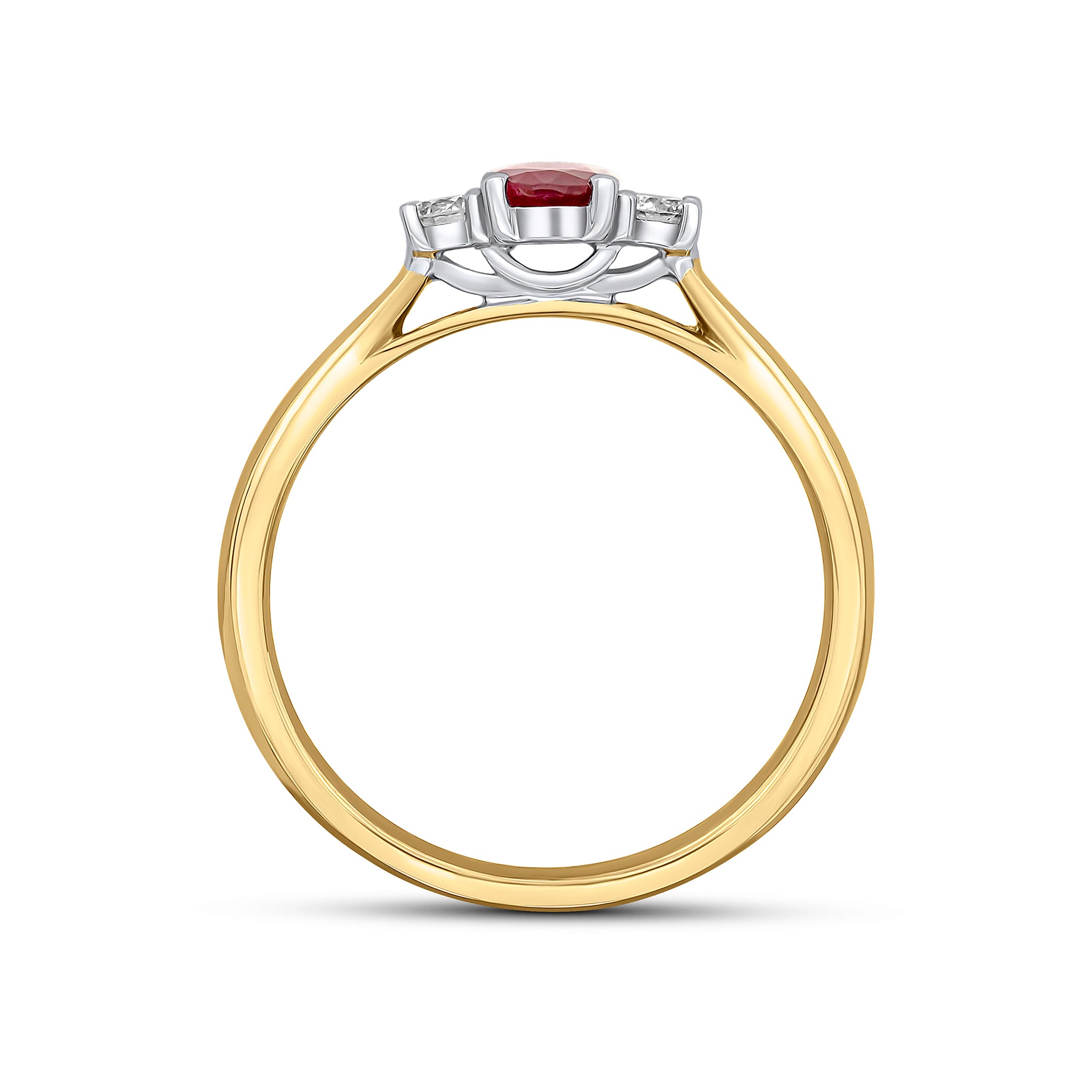 18CT Yellow & White Gold Oval Ruby & Diamond Claw Three Stone Ring 6x4mm