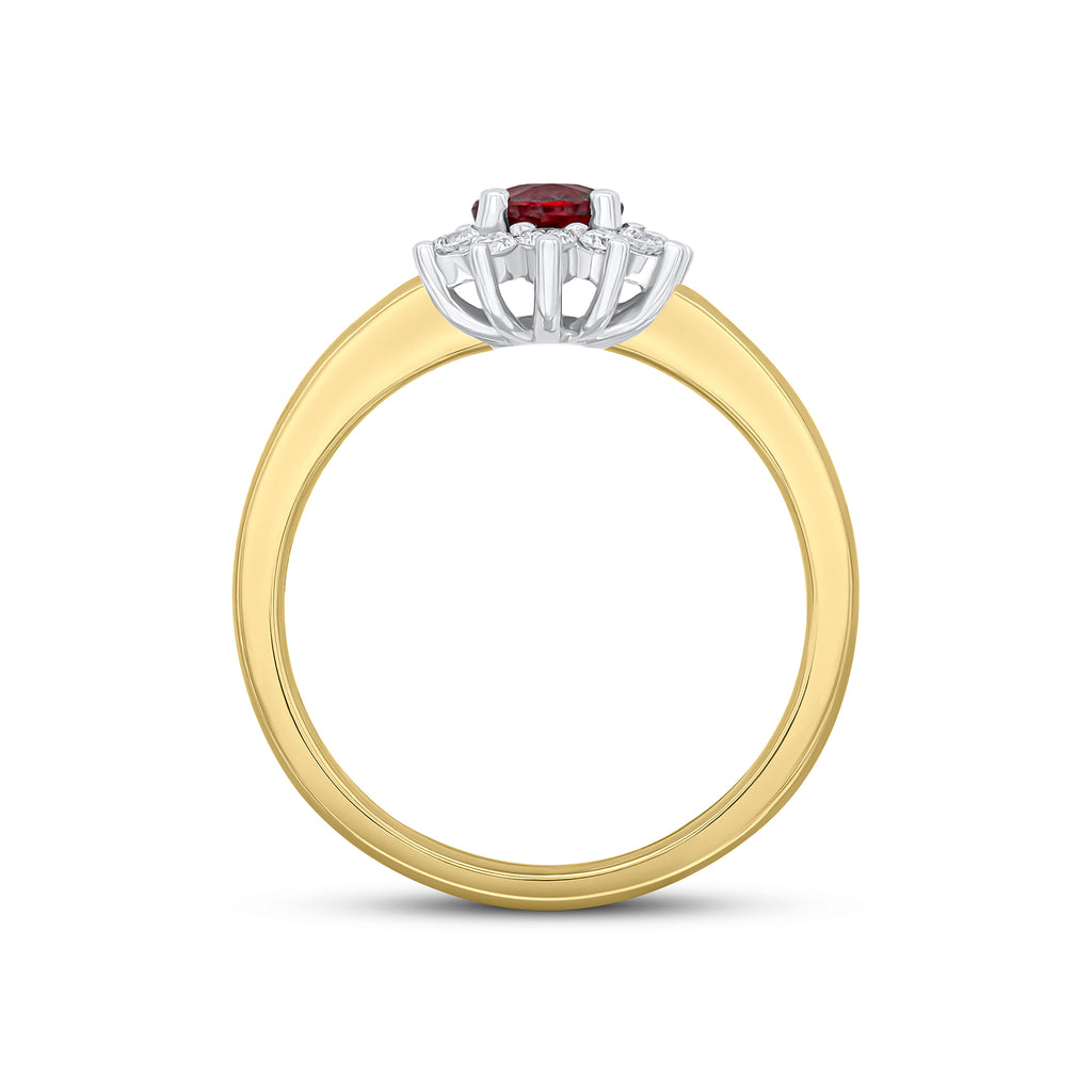 18CT Yellow & White Gold Oval Ruby & Round Diamond Claw Set Cluster Ring 6x5mm