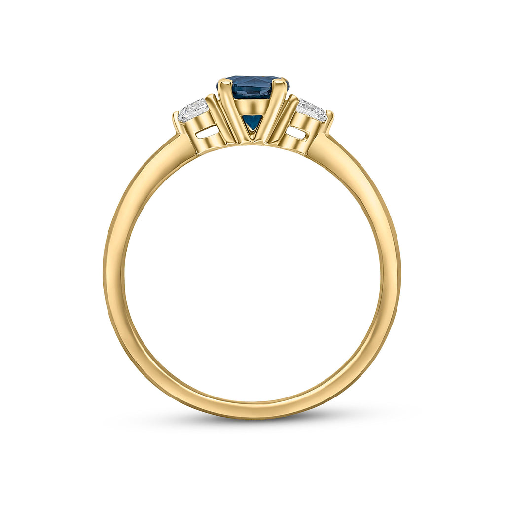18CT Yellow Gold Round Sapphire & Diamond Three Stone Ring 5mm