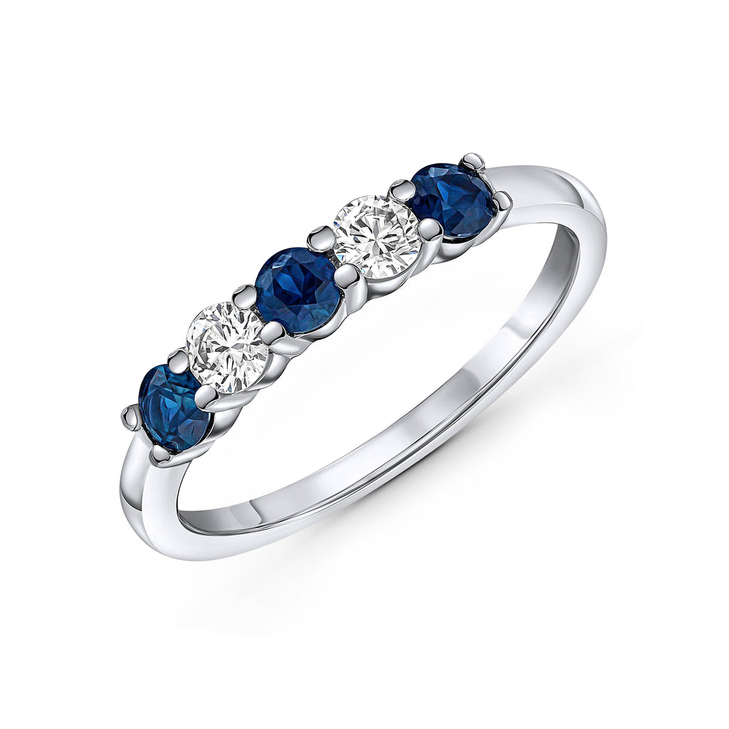 18CT White Gold Round Sapphire & Diamond Claw Set 5 Stone Ring