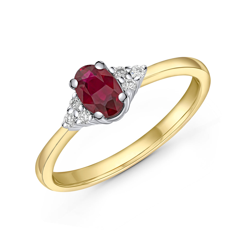 18CT Yellow Gold Oval Ruby & Diamond Trefoil Ring 6x4mm