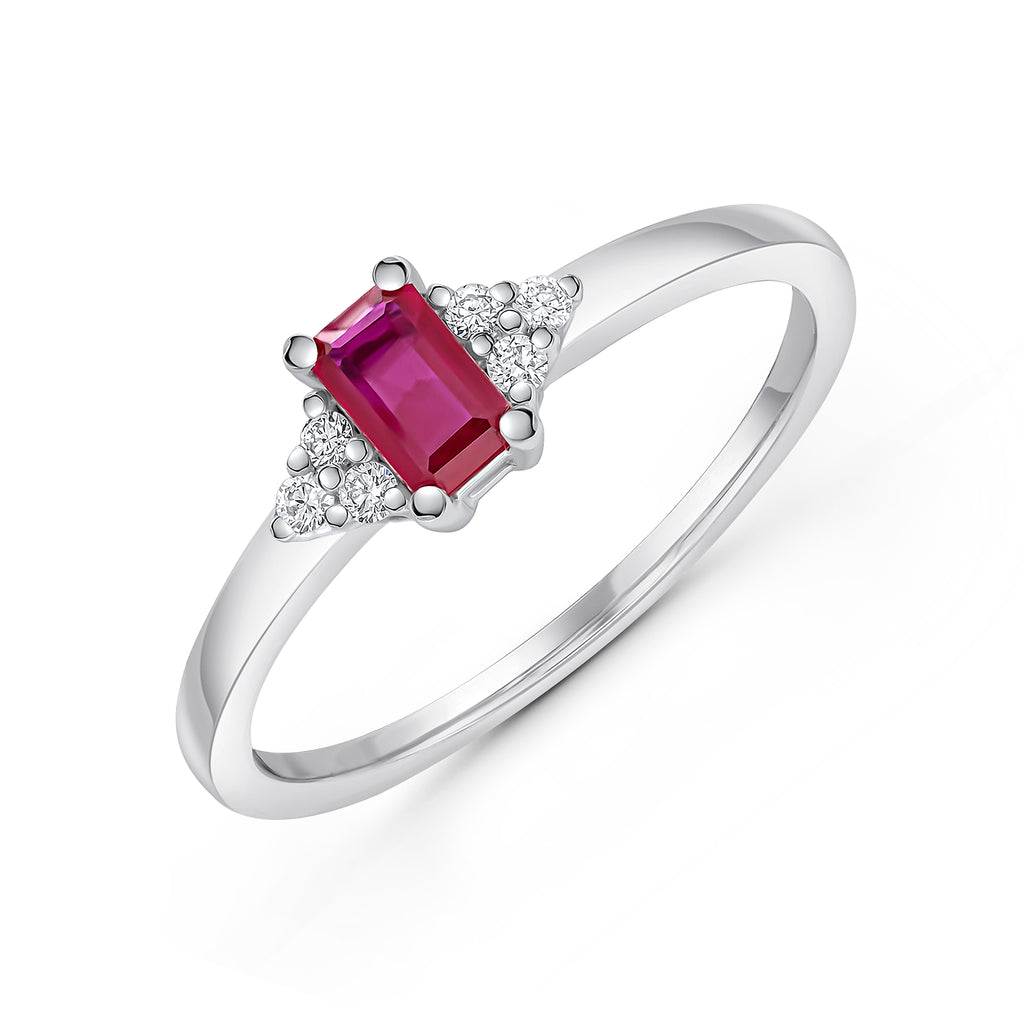 18CT White Gold Octagonal Ruby & Round Diamond Trefoil Ring 5x3mm