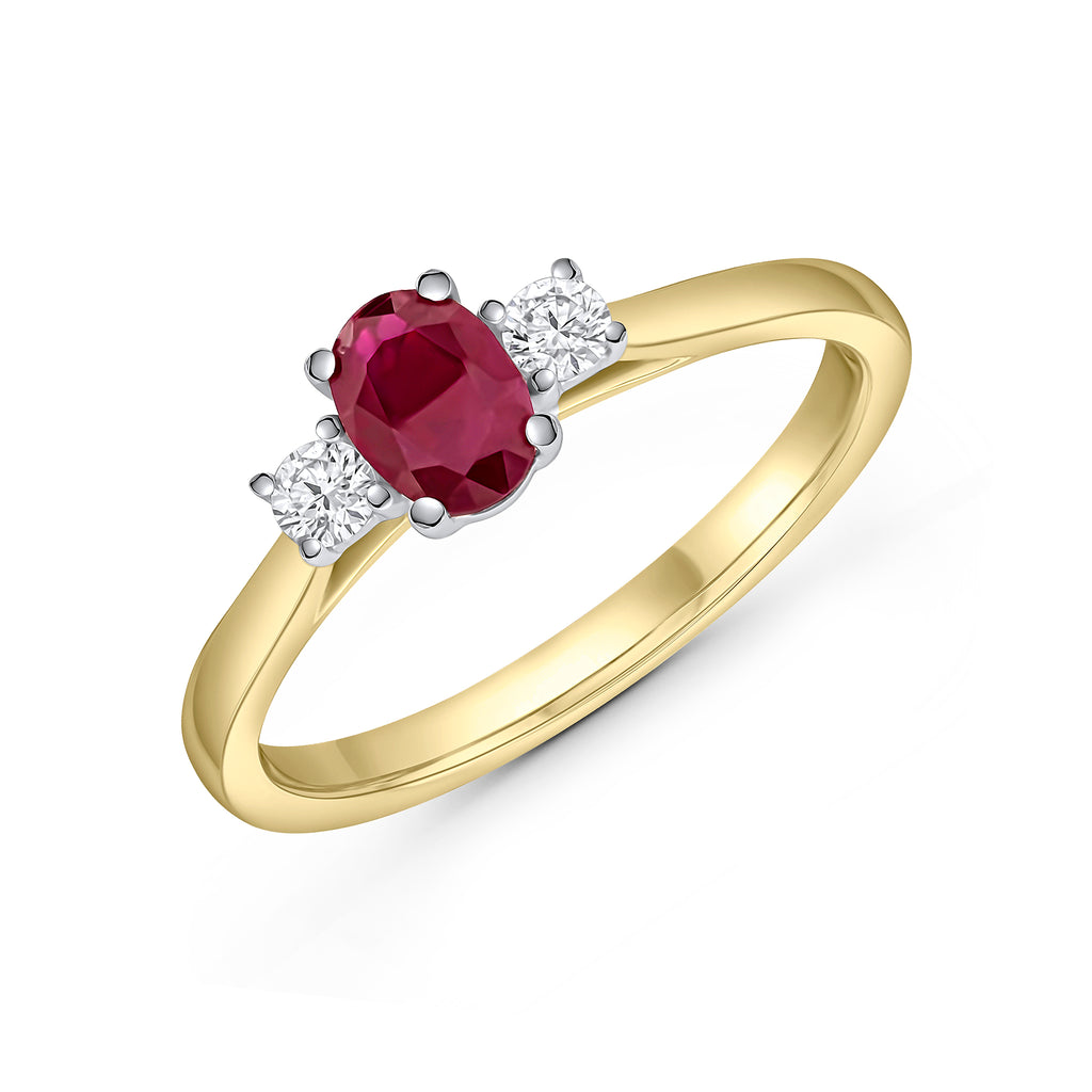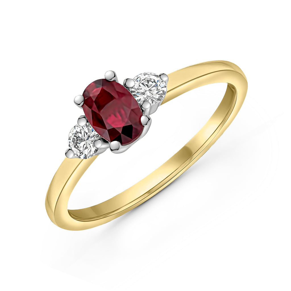 18CT Yellow & White Gold Oval Ruby & Diamond Claw Three Stone Ring 6x4mm