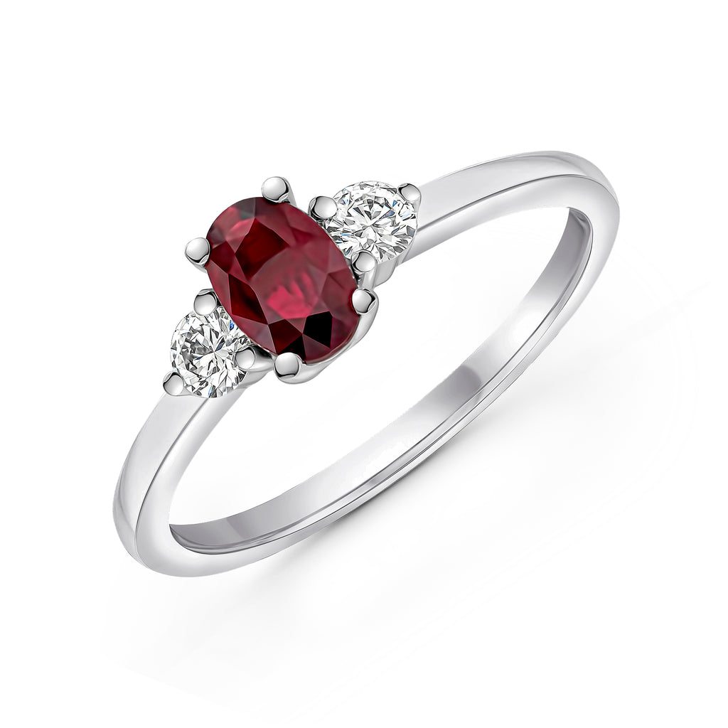 18CT White Gold Oval Ruby & Diamond Claw Three Stone Ring 6x4mm