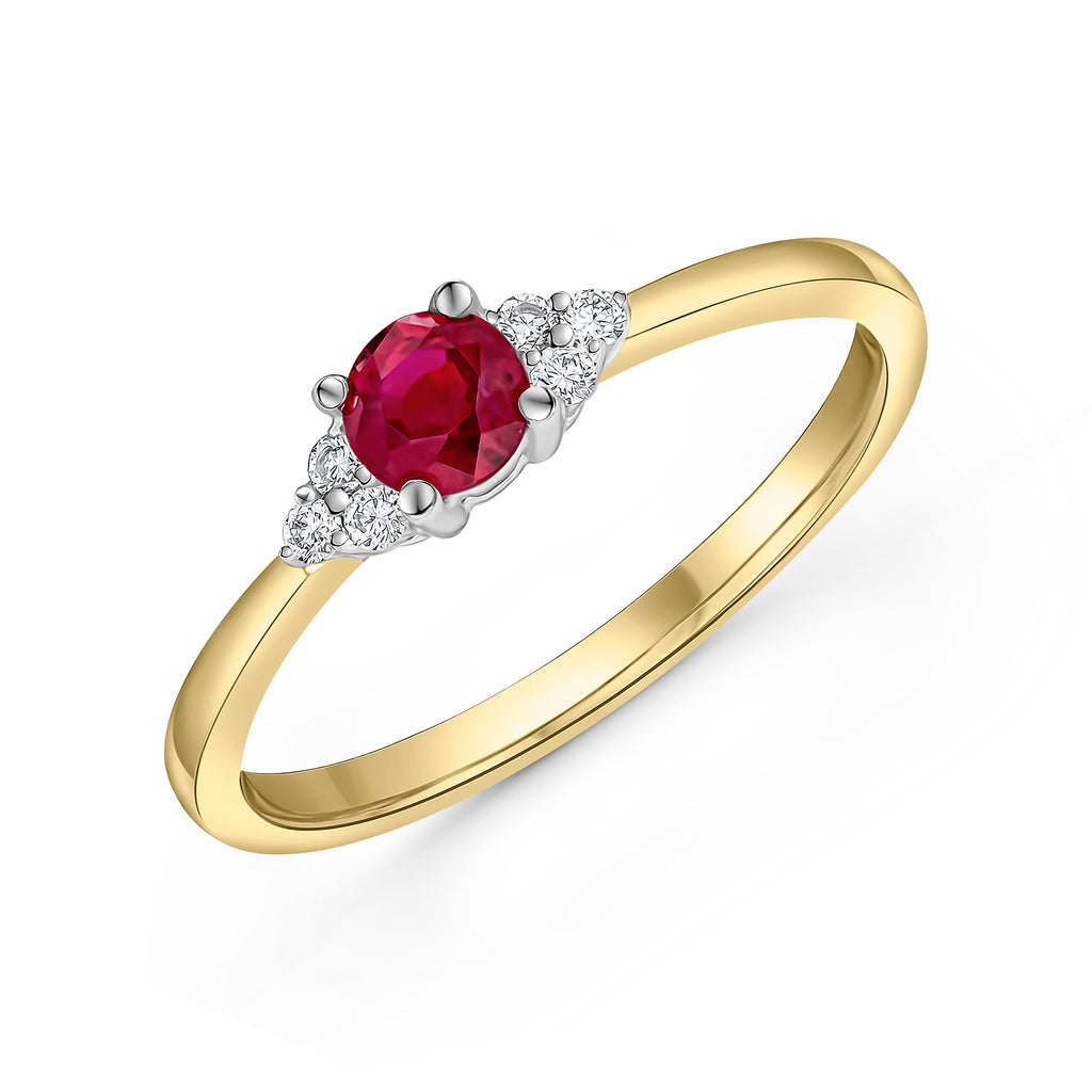 18CT Yellow & White Gold Round Ruby & Diamond Trefoil Ring 4mm