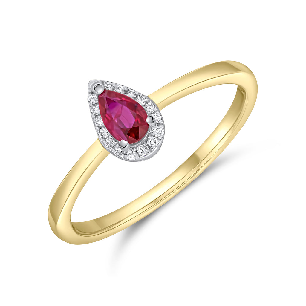 18CT Yellow & White Gold Pear Shaped Ruby & Round Diamond Cluster Ring 5x3mm