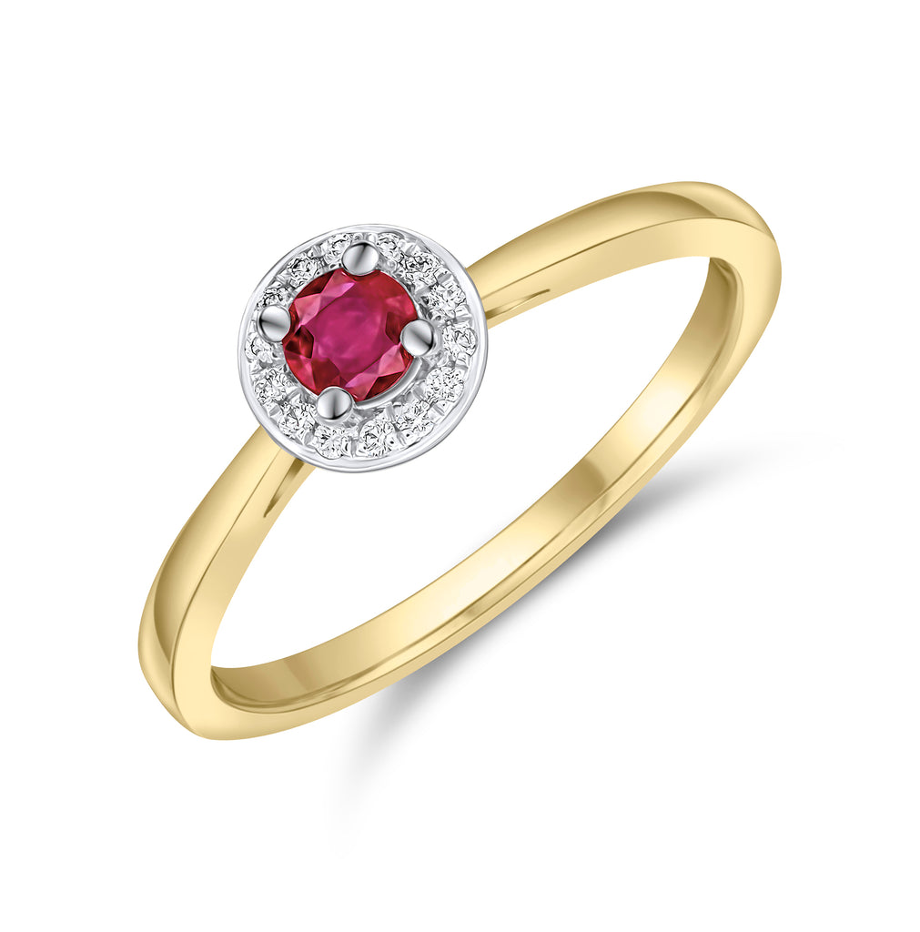 18CT Yellow & White Gold Round Ruby & Diamond Claw Set Cluster Ring 3.5mm