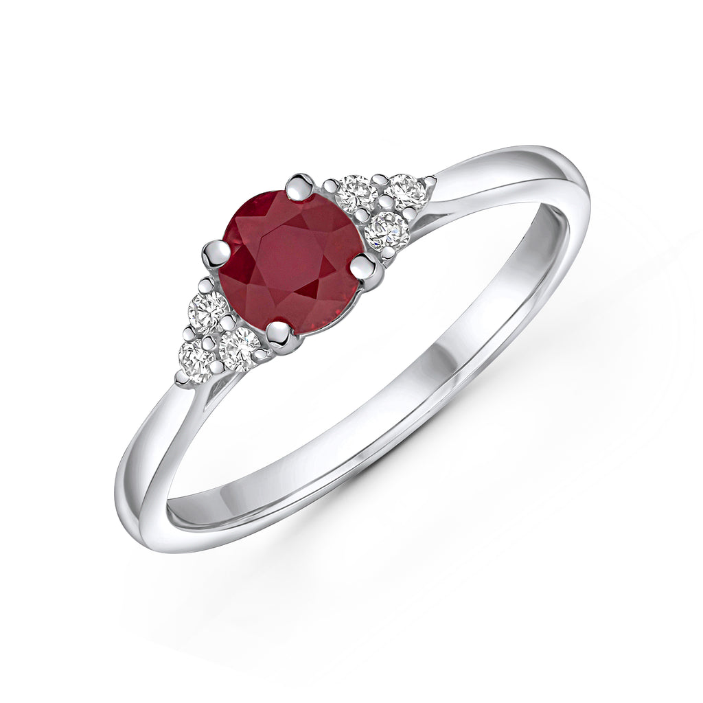 18CT White Gold Round Ruby & Diamond Trefoil Ring 5mm