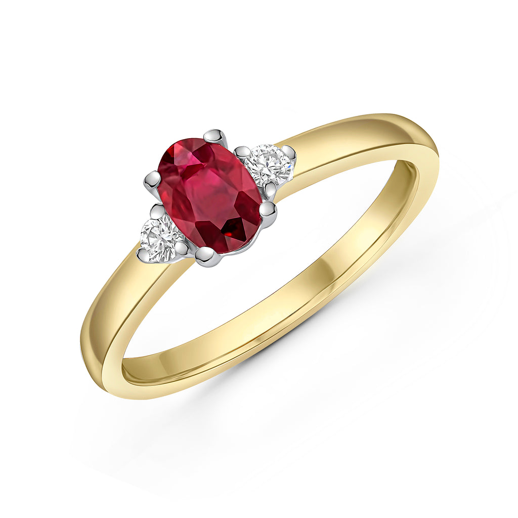 18CT Yellow & White Gold Oval Ruby & Diamond Claw Three Stone Ring 6x4mm
