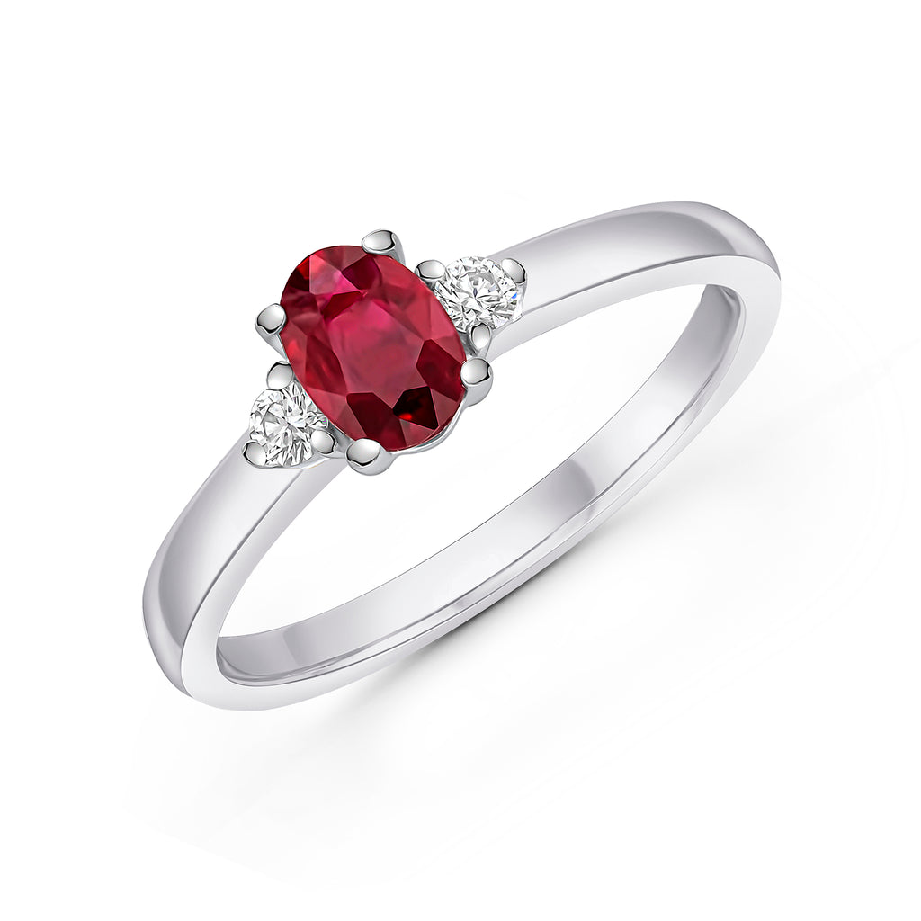 18CT White Gold Oval Ruby & Diamond Claw Three Stone Ring 6x4mm