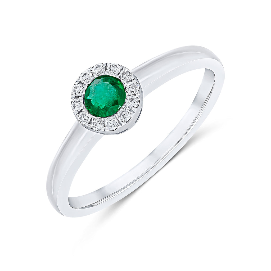 18CT White Gold Round Emerald & Diamond Cluster Ring 3mm