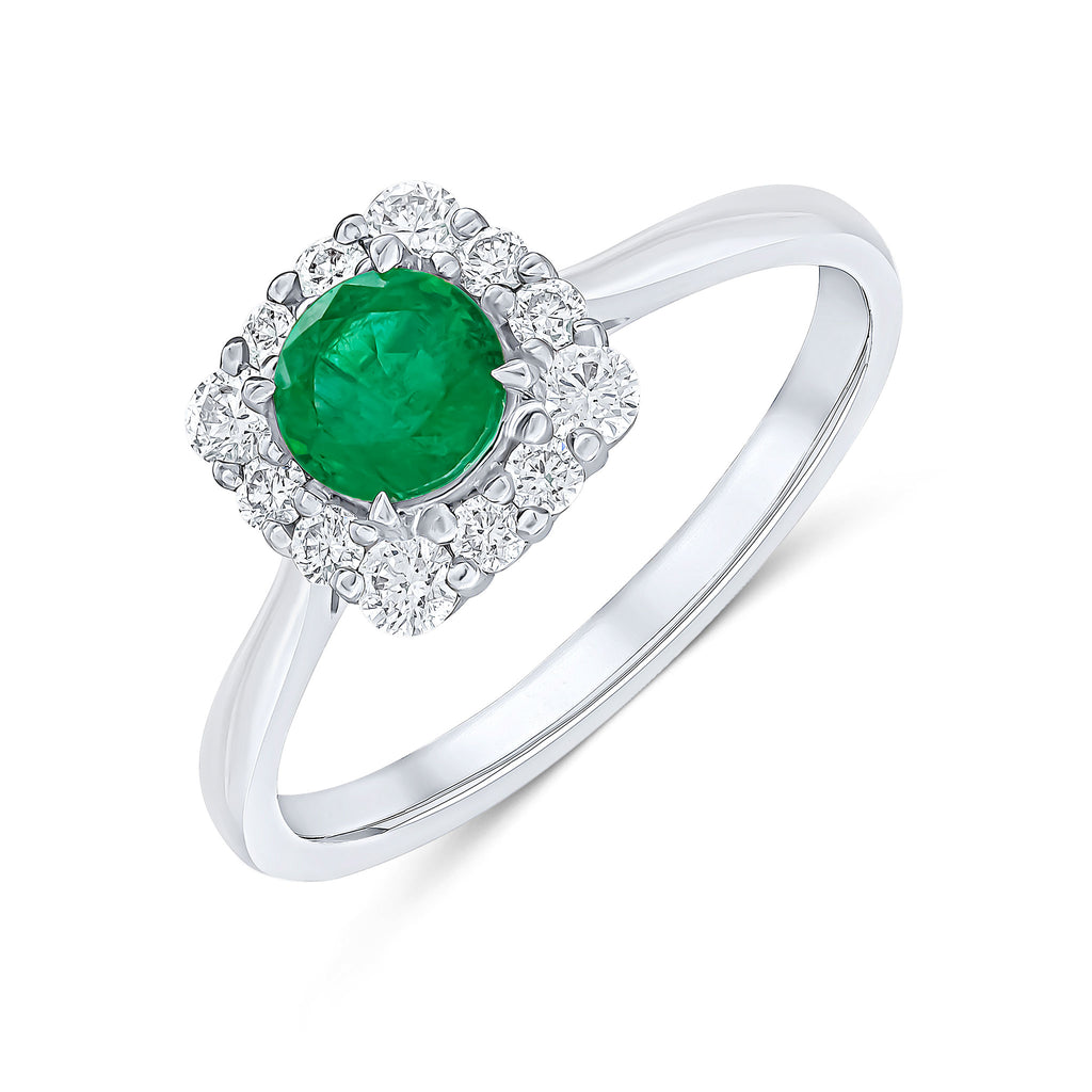 18CT White Gold Round Emerald & Diamond Cluster Claw Set Ring 4mm