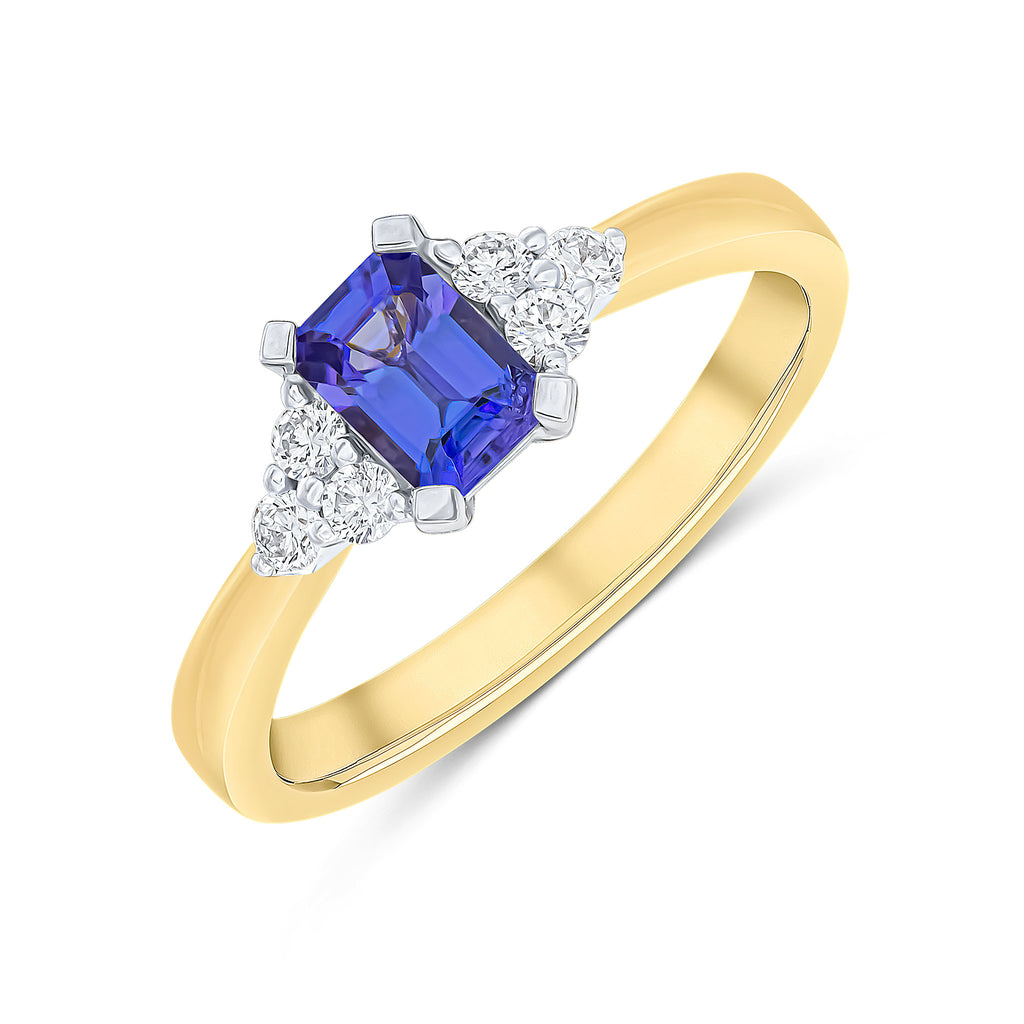18CT Yellow & White Gold Octagonal Tanzanite & Round Diamond Trefoil Ring 6x4mm