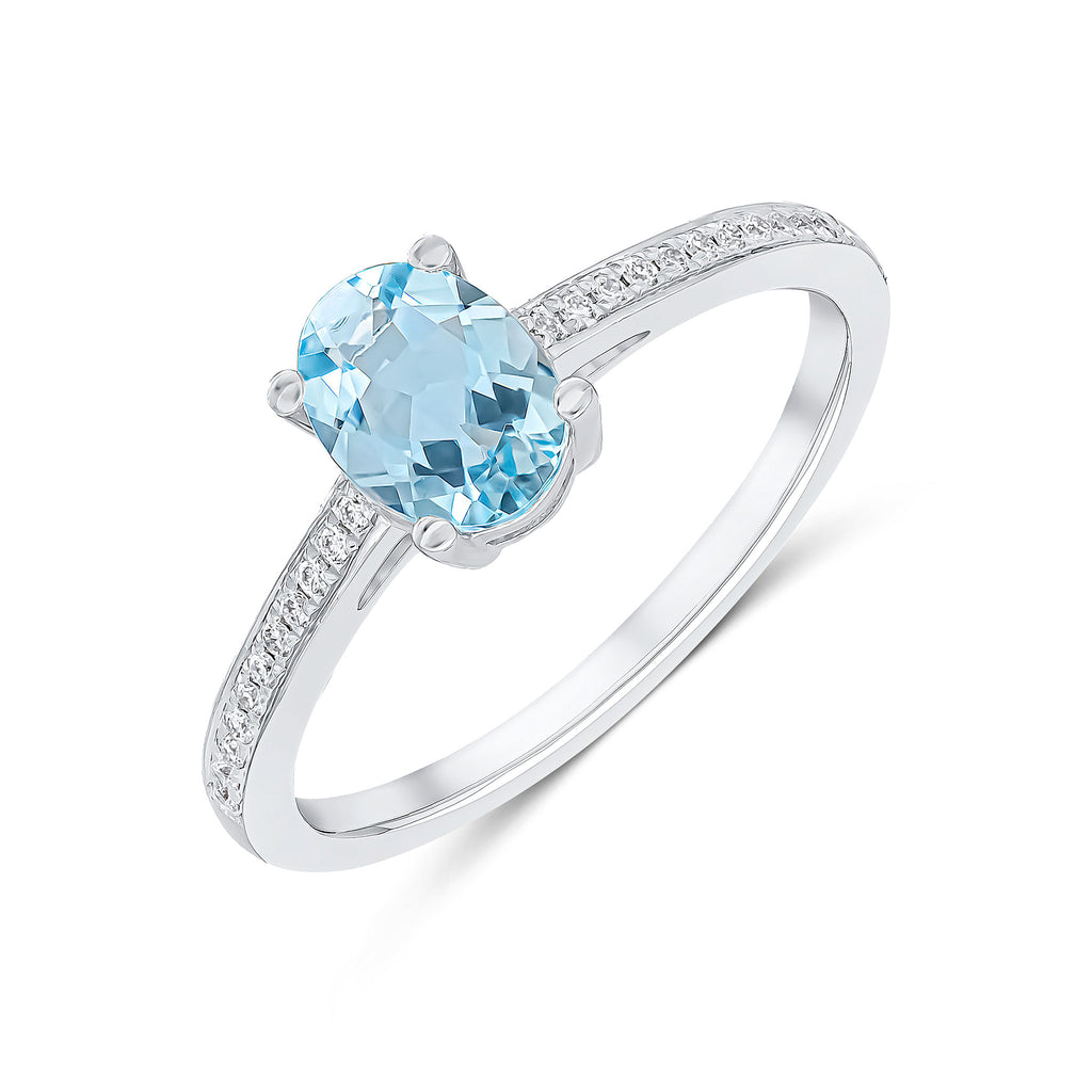 18CT White Gold Oval Aquamarine Ring with Grain Set Diamond Shoulders 7x5mm
