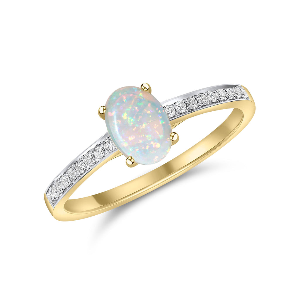 18CT Yellow Gold Oval Opal Ring with Diamond Set Shoulders 7x5mm