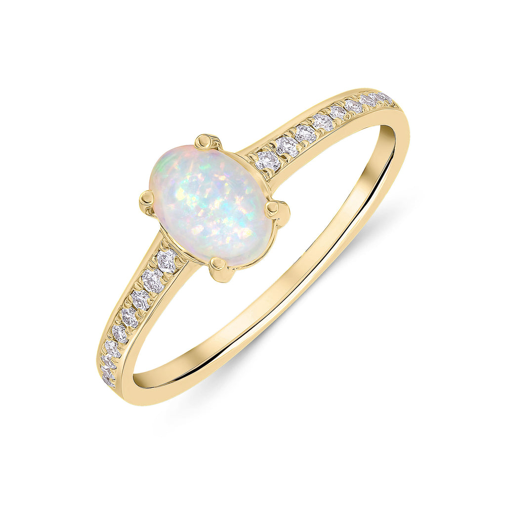 18CT Yellow Gold Oval Opal & Diamond Ring 7x5mm