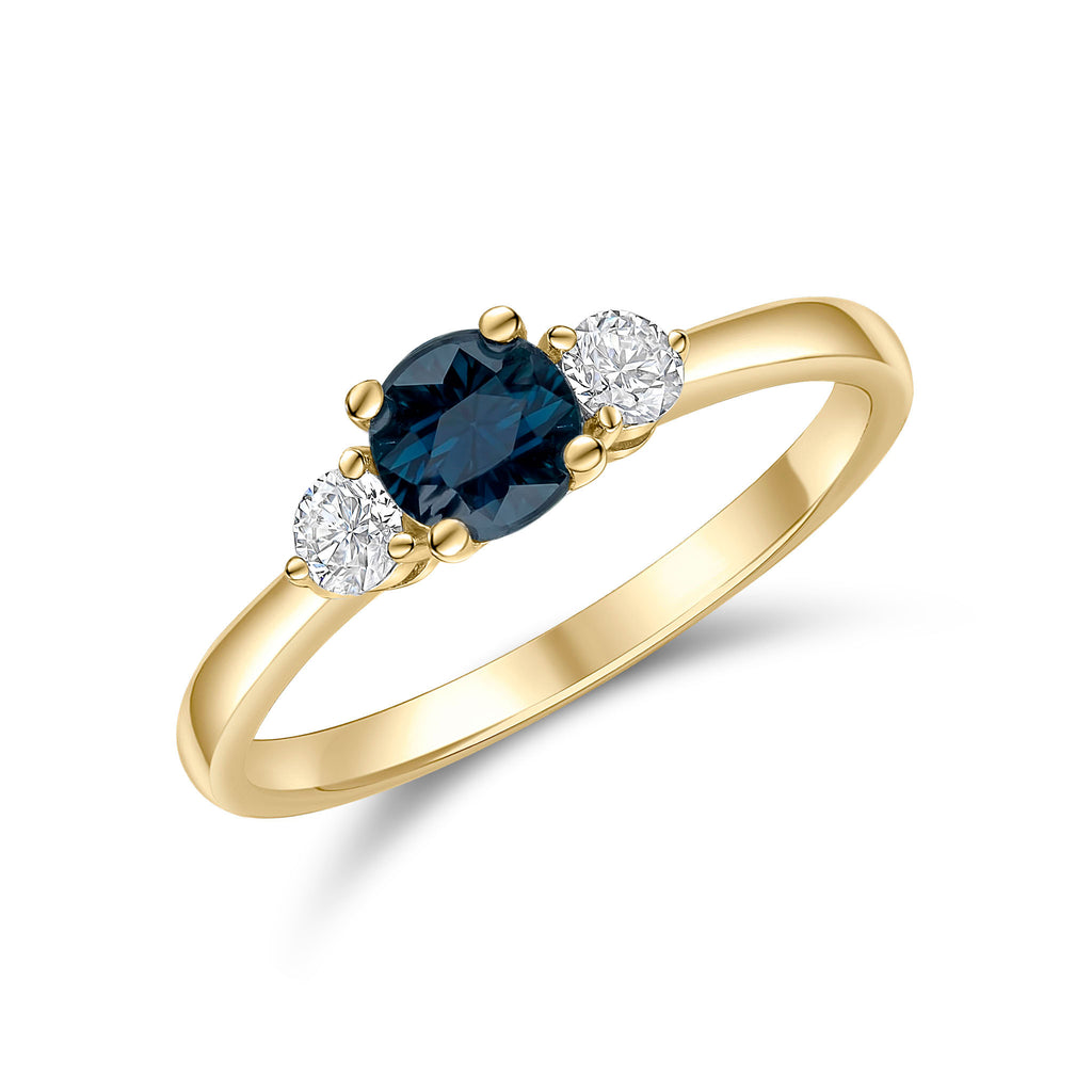 18CT Yellow Gold Round Sapphire & Diamond Three Stone Ring 5mm