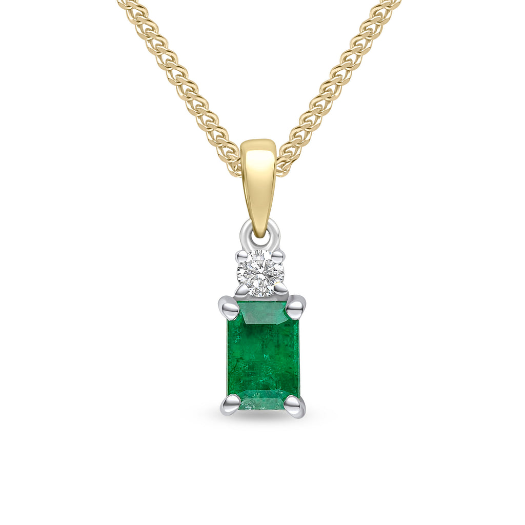 18CT White & Yellow Gold Octagonal Emerald & Round Diamond Two Stone Pendants 6x4mm