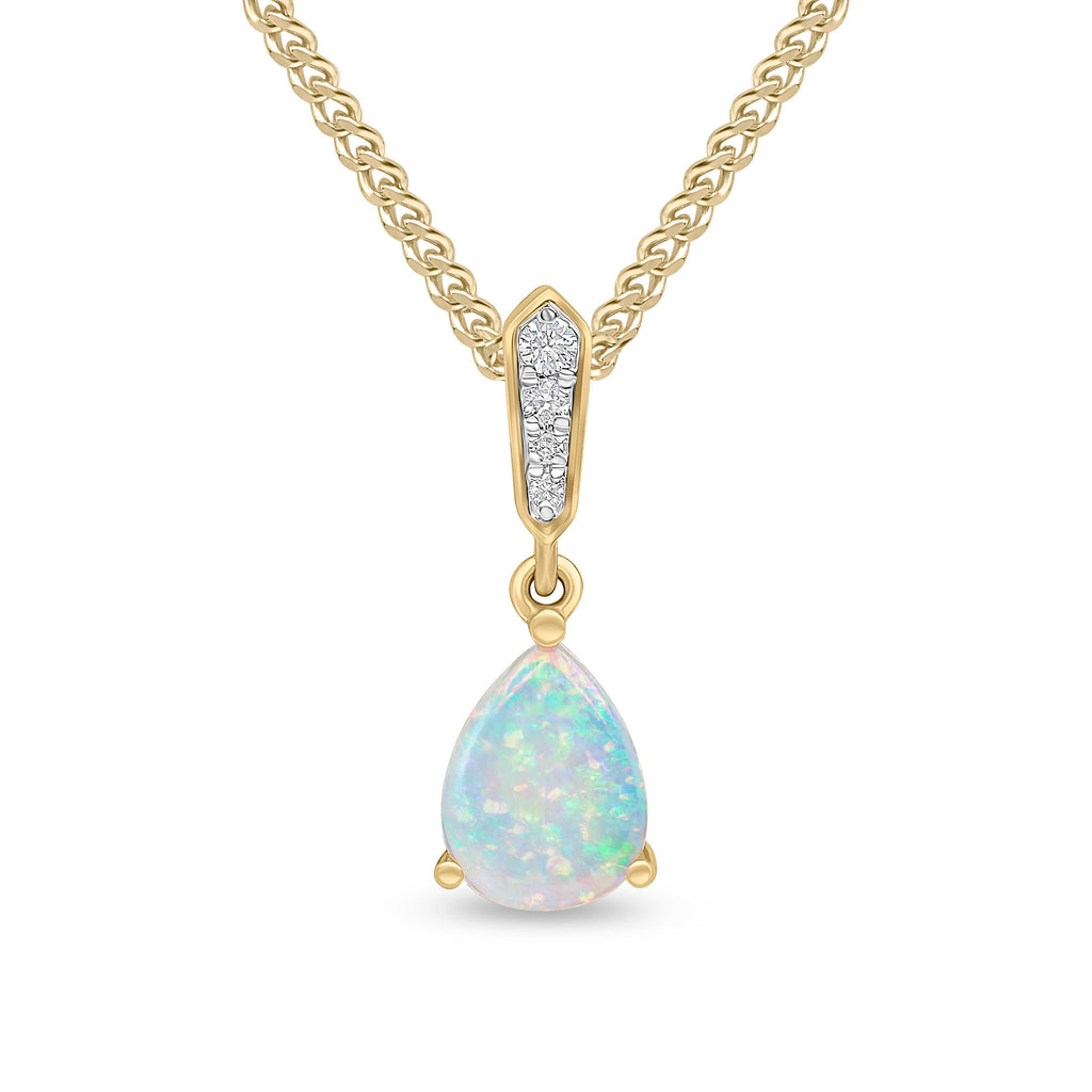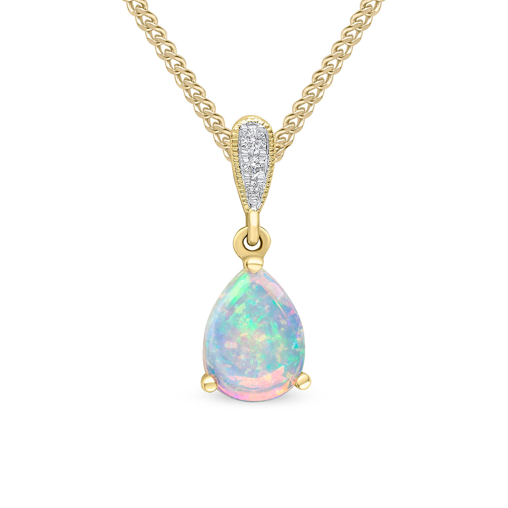 18CT Yellow Gold Claw Pear Shaped Opal & Grain Set Diamond Pendant 8x6mm