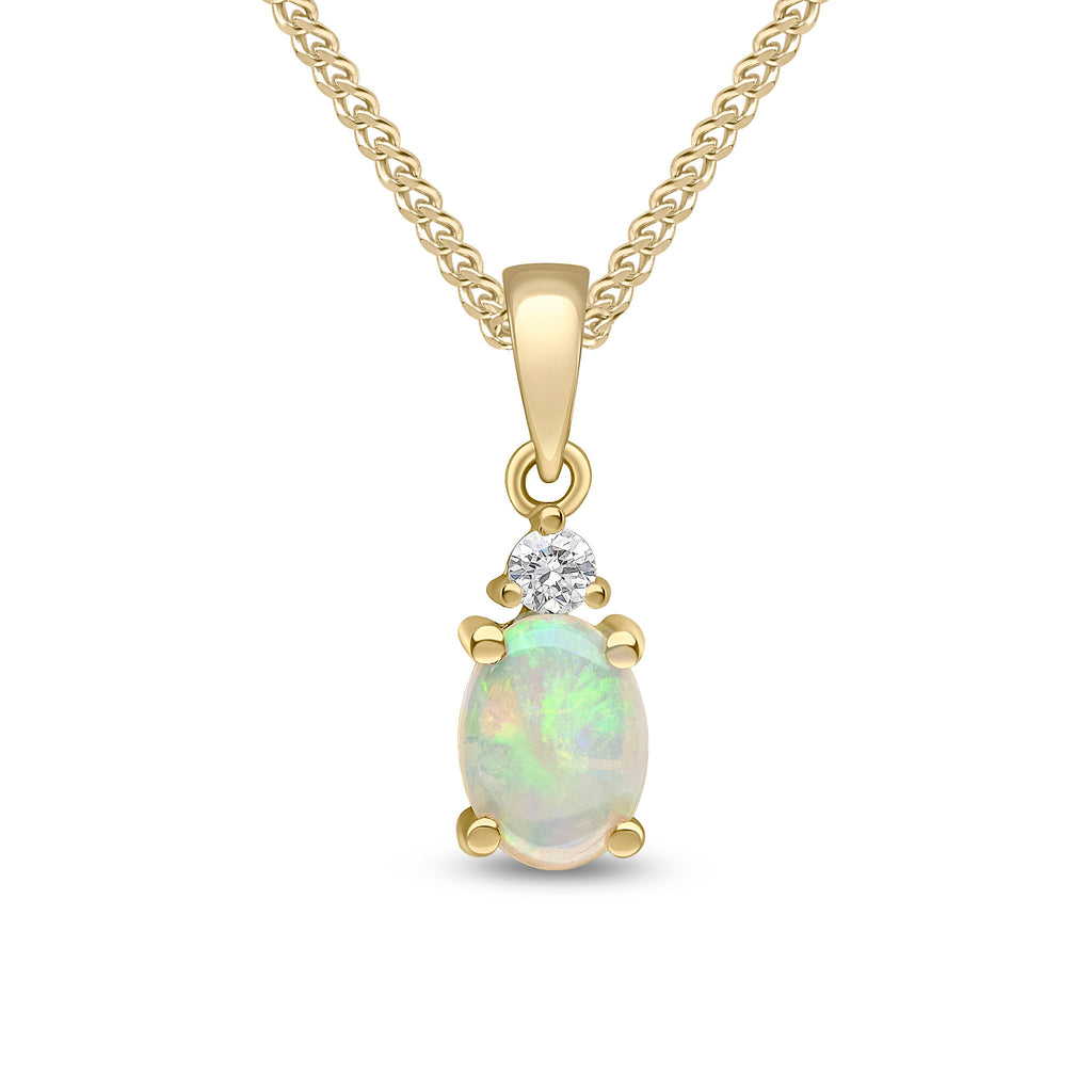18CT Yellow Gold Oval Opal & Diamond Two Stone Pendant 7x5mm