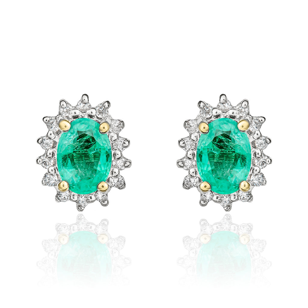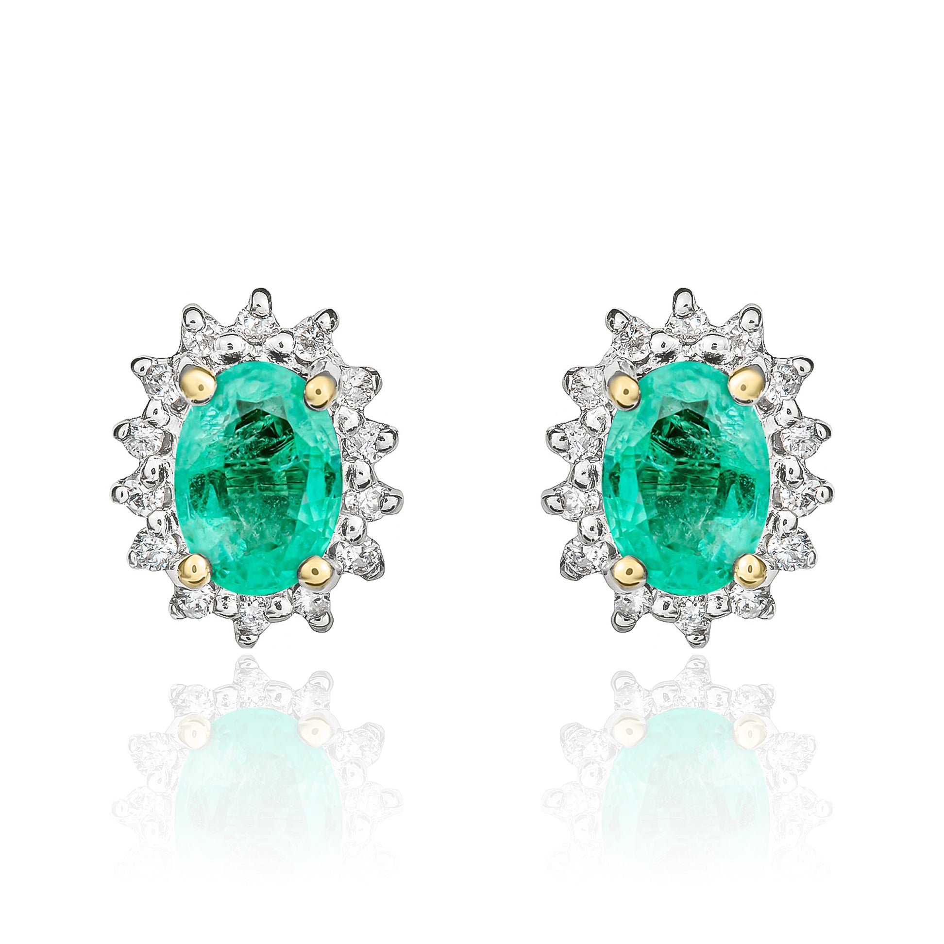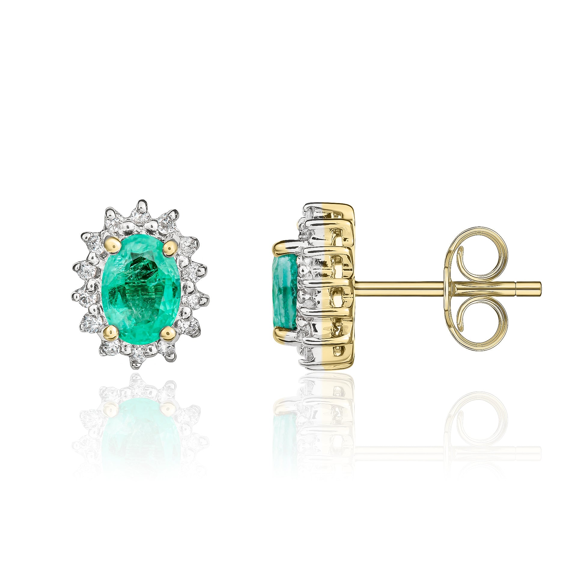 9CT Yellow Gold Oval Emerald & Diamond Cluster Earrings 6x4mm