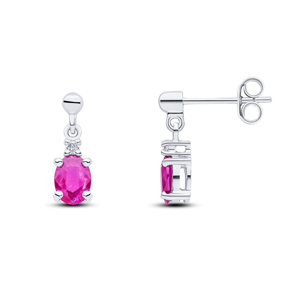 9CT White Gold Oval Ruby & Diamond Two Stone Drop Earrings 6x4mm