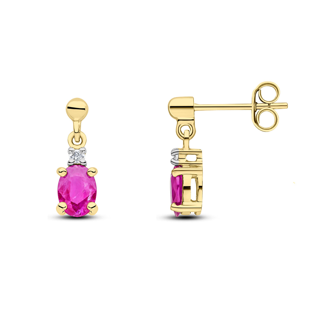 9CT Yellow Gold Oval Ruby & Diamond Two Stone Drop Earrings 6x4mm