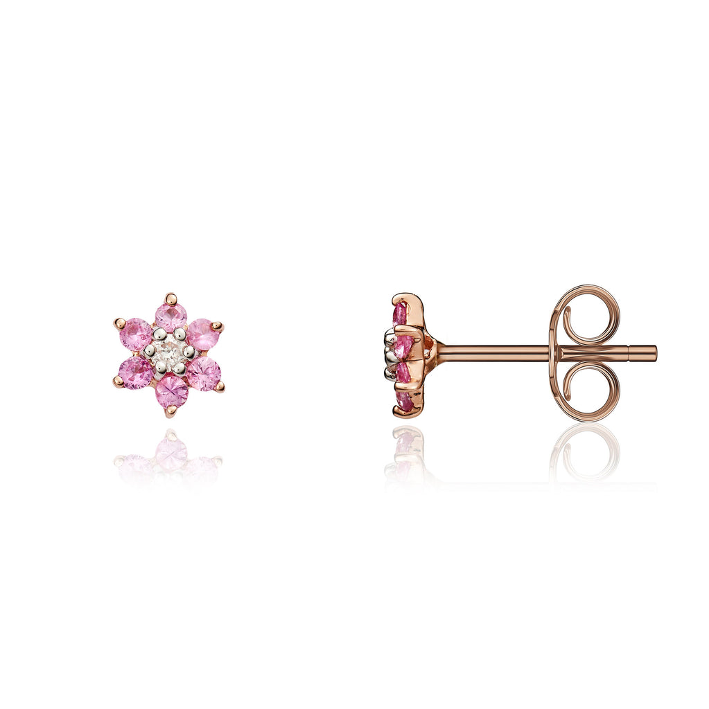 9CT Rose Gold Pink Sapphire & Diamond Reverse Cluster Earrings