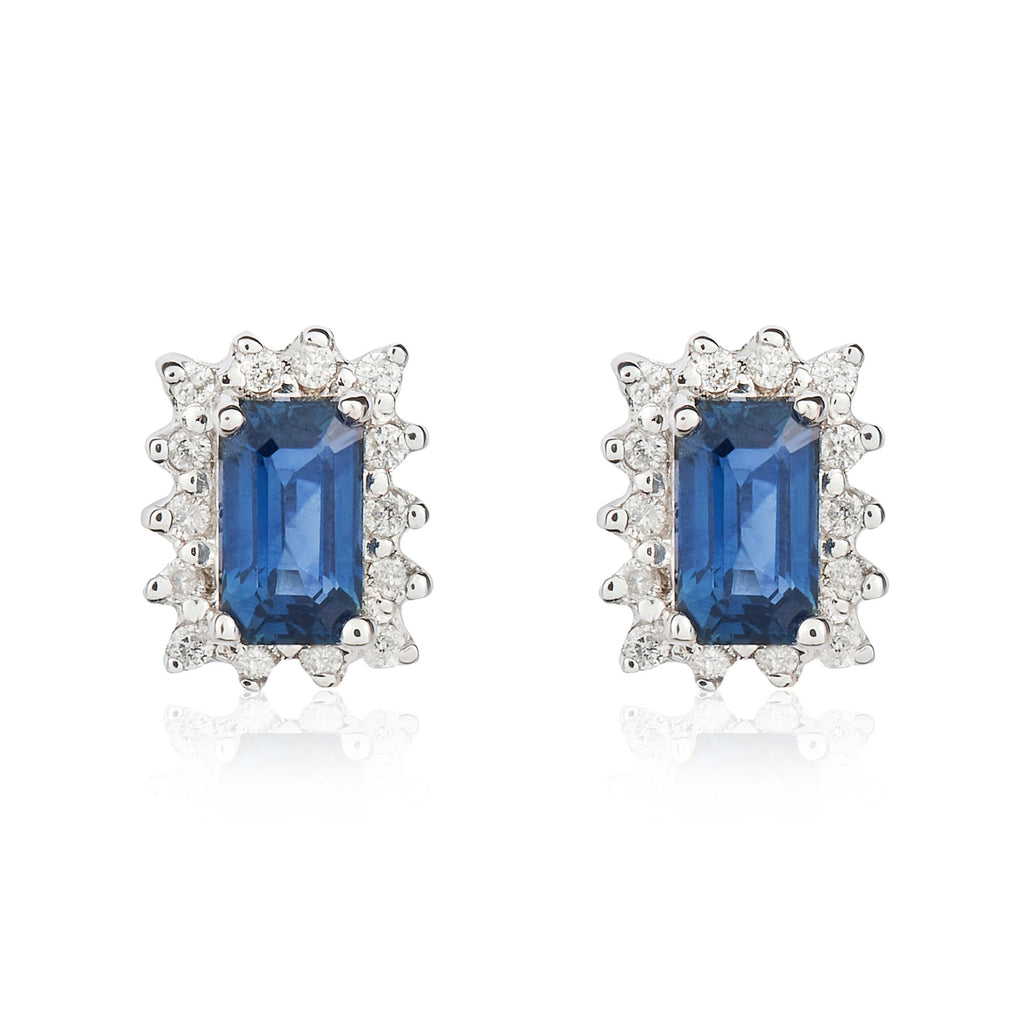 9CT White Gold Octagonal Sapphire & Diamond Cluster Claw Earrings 5x3mm