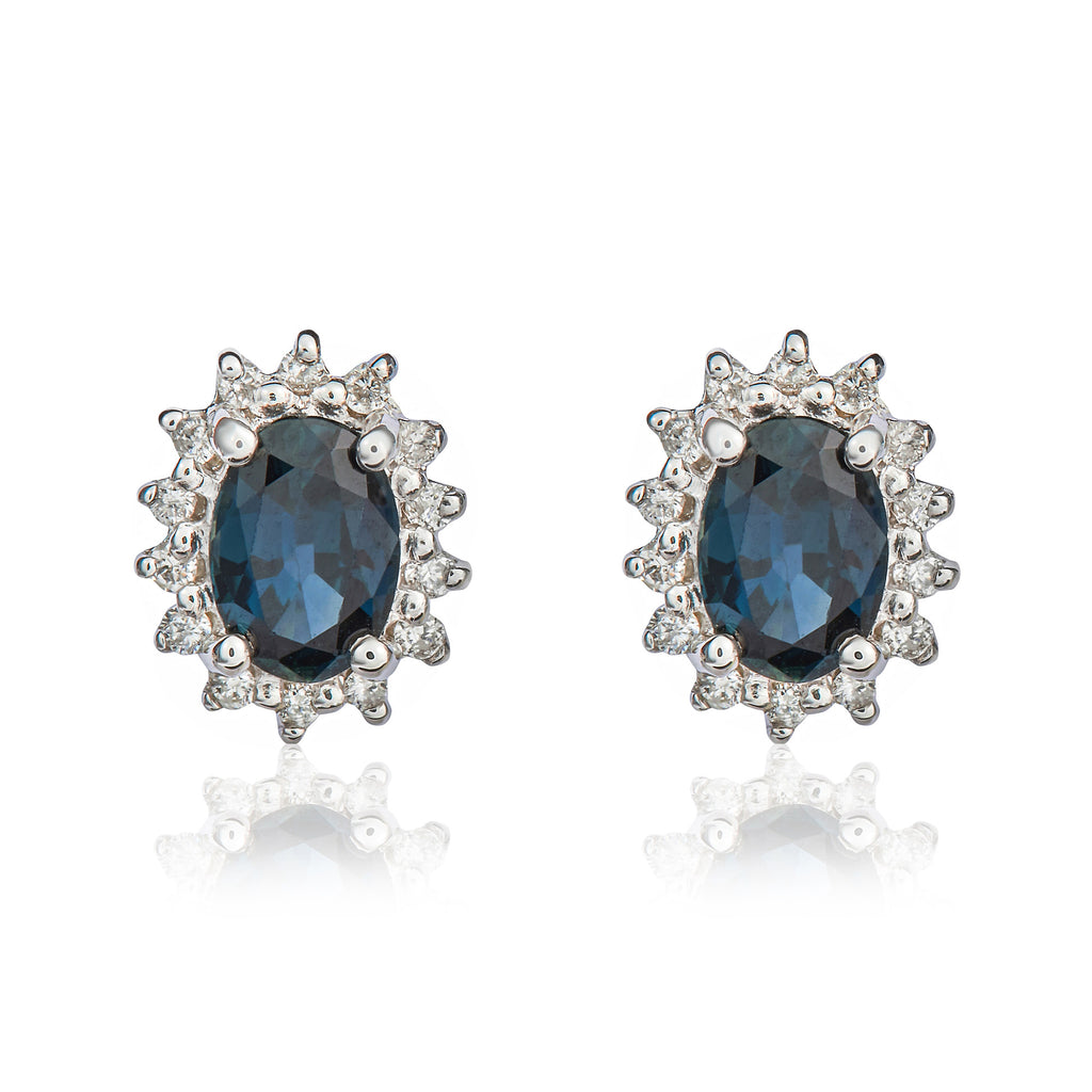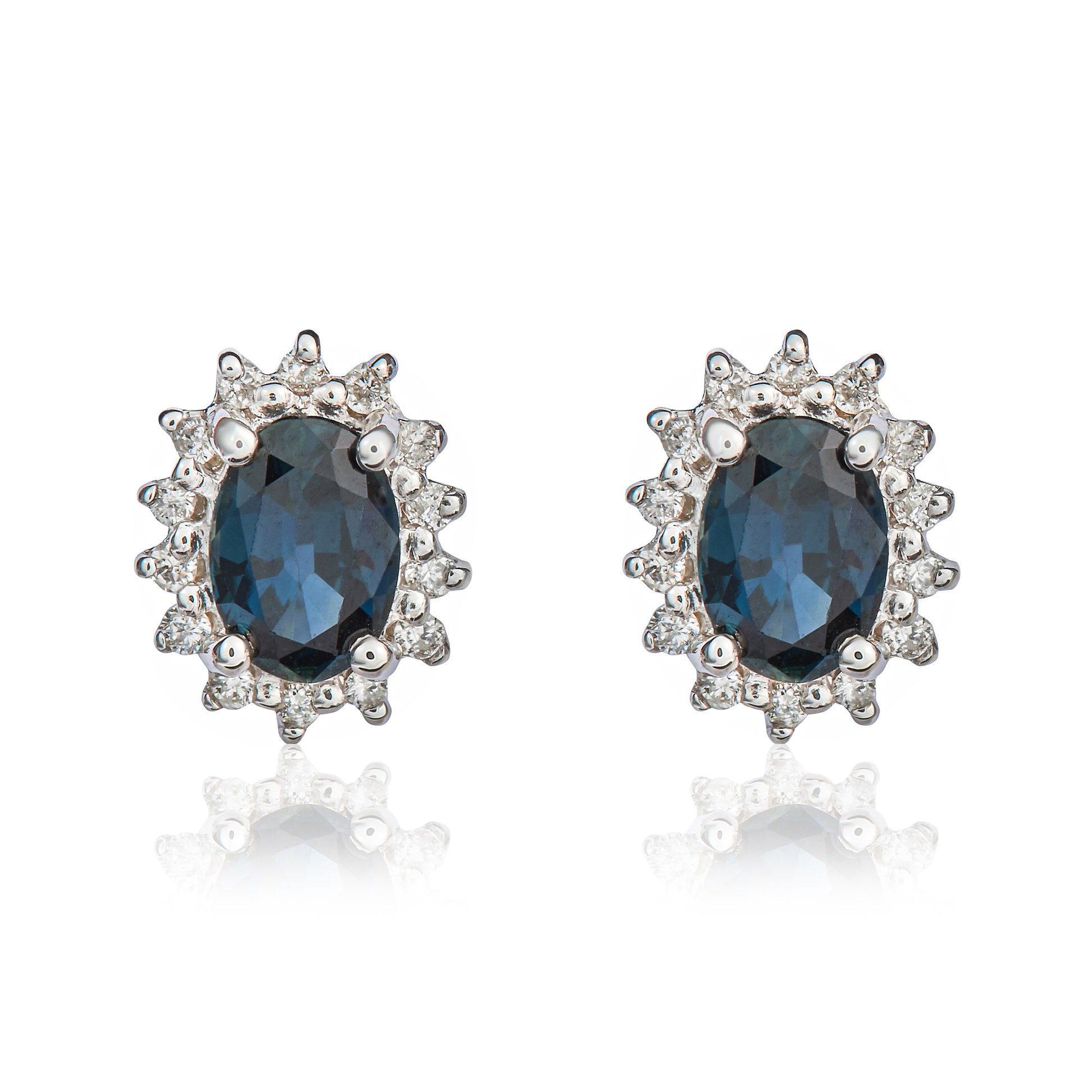 9CT White Gold Oval Sapphire & Diamond Cluster Earrings 6x4mm