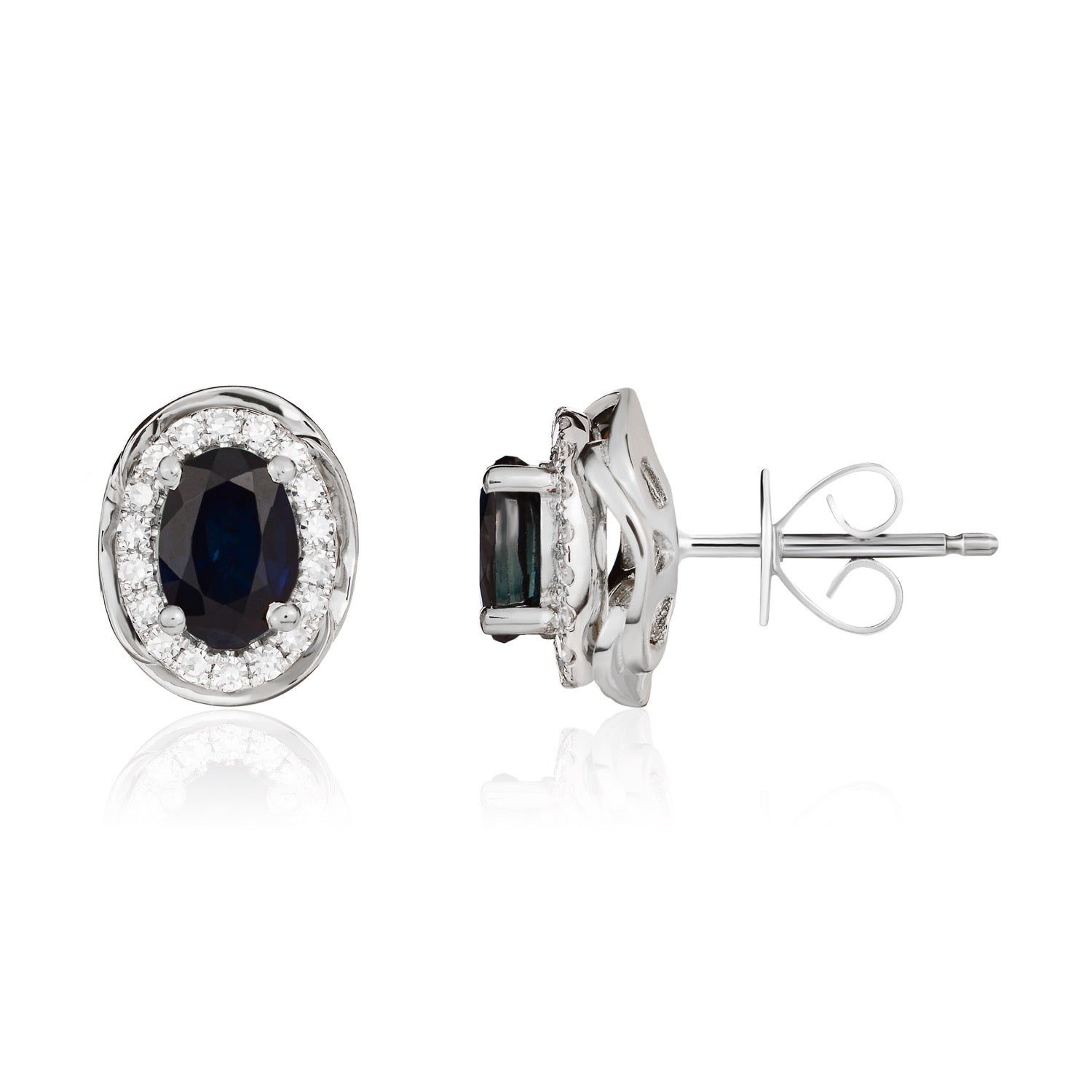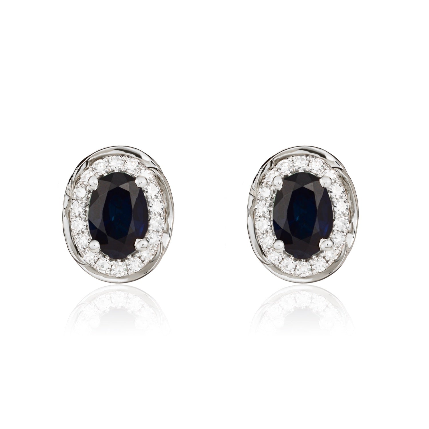 9CT White Gold Oval Sapphire & Diamond Cluster Earrings 6x4mm