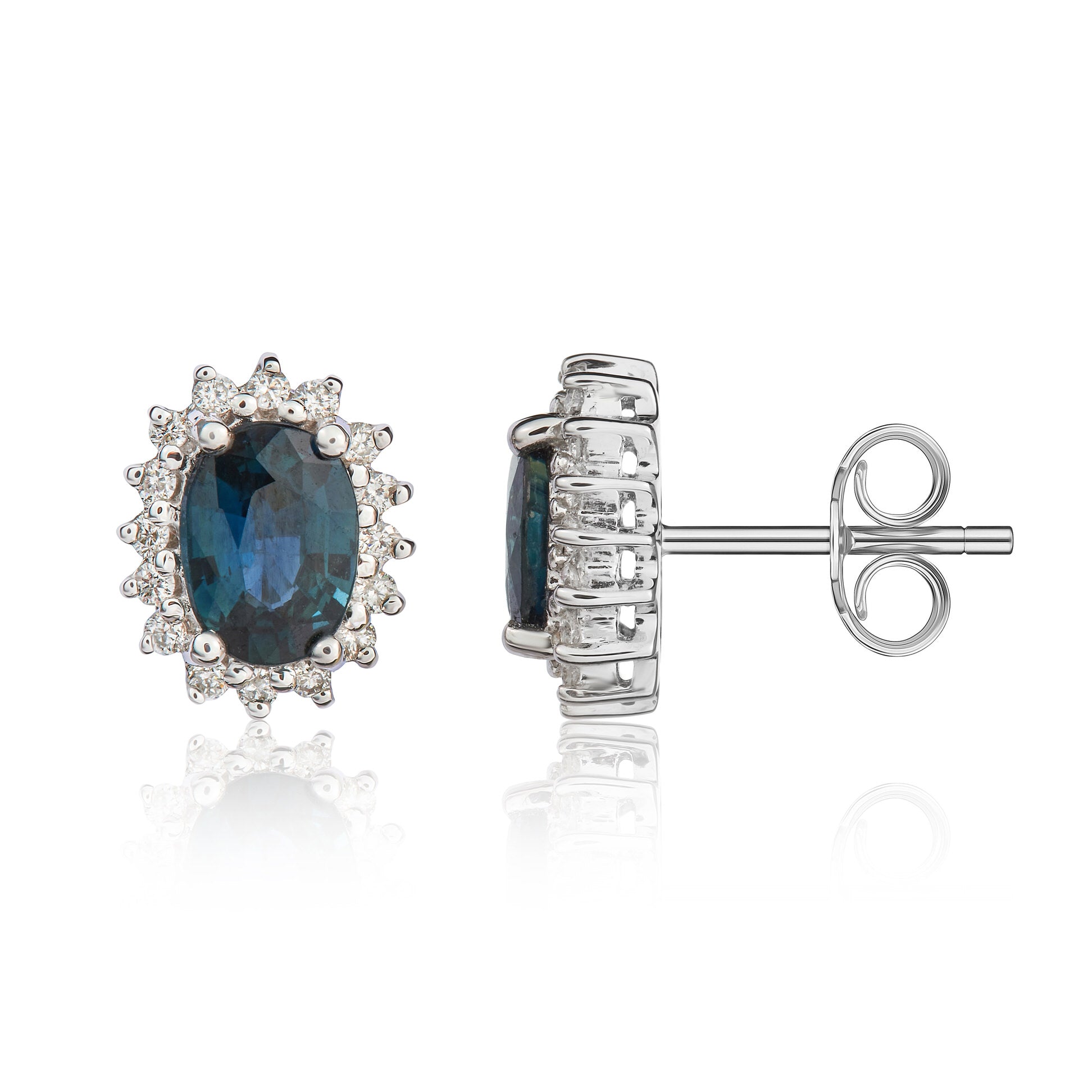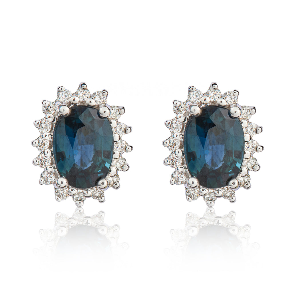 9CT White Gold Oval Sapphire & Diamond Cluster Earrings 7x5mm
