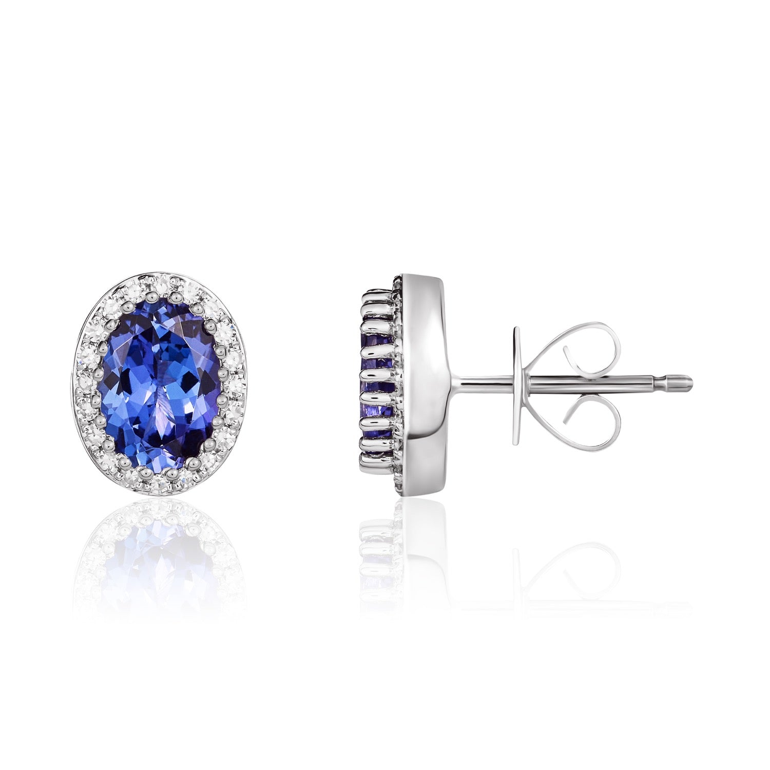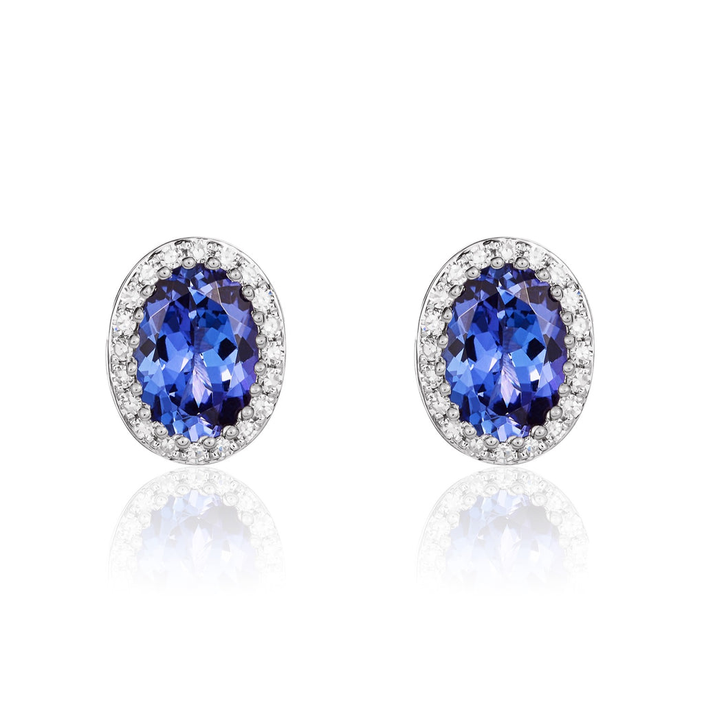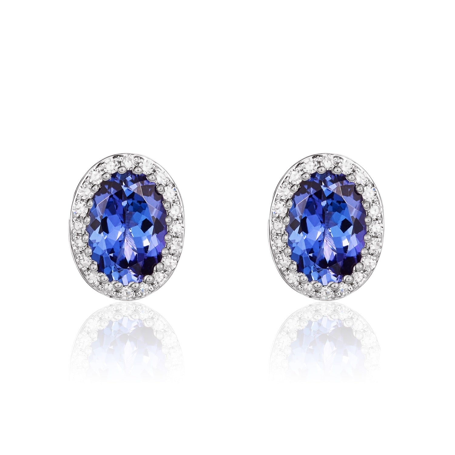 9CT White Gold Oval Tanzanite & Diamond Cluster Earrings 7x5mm