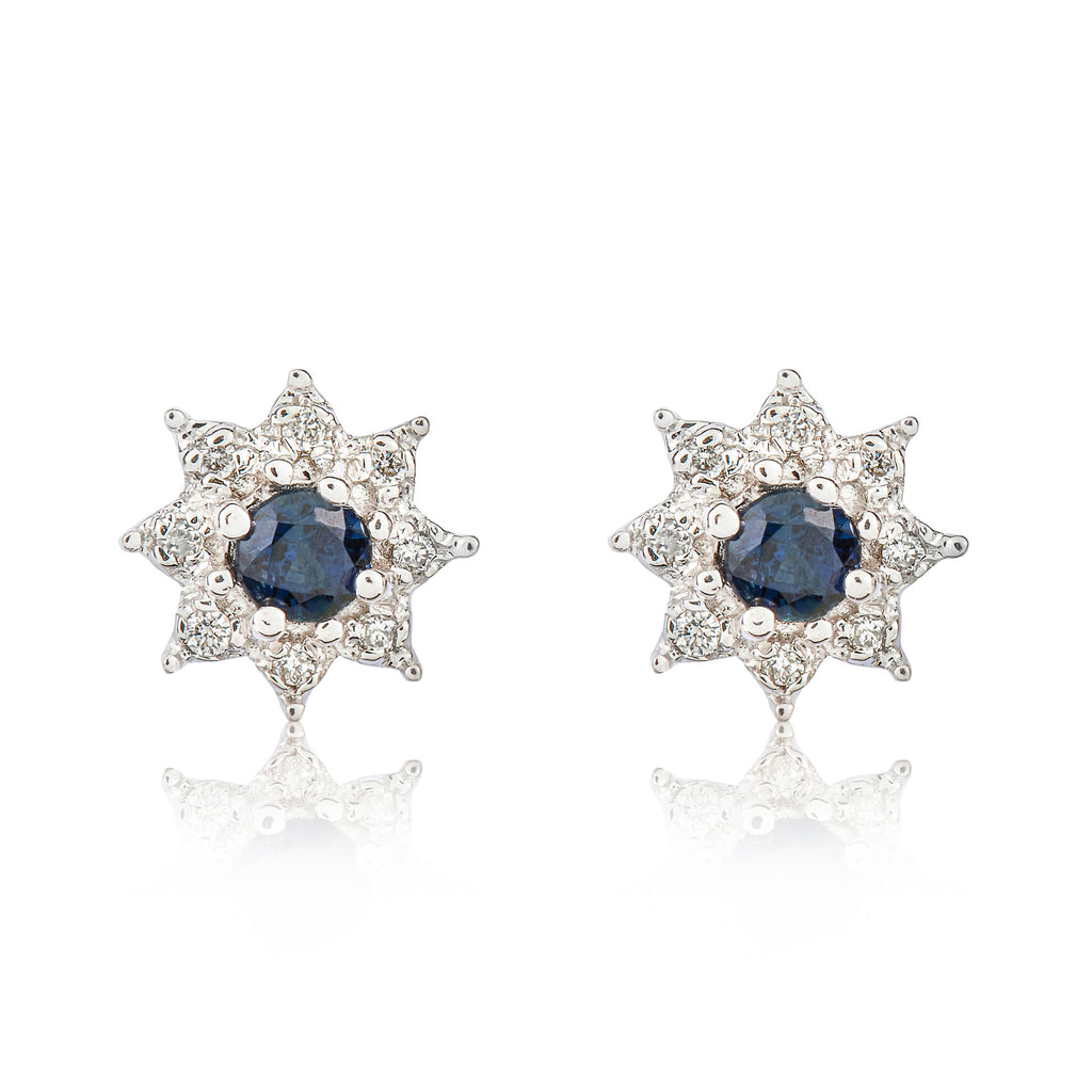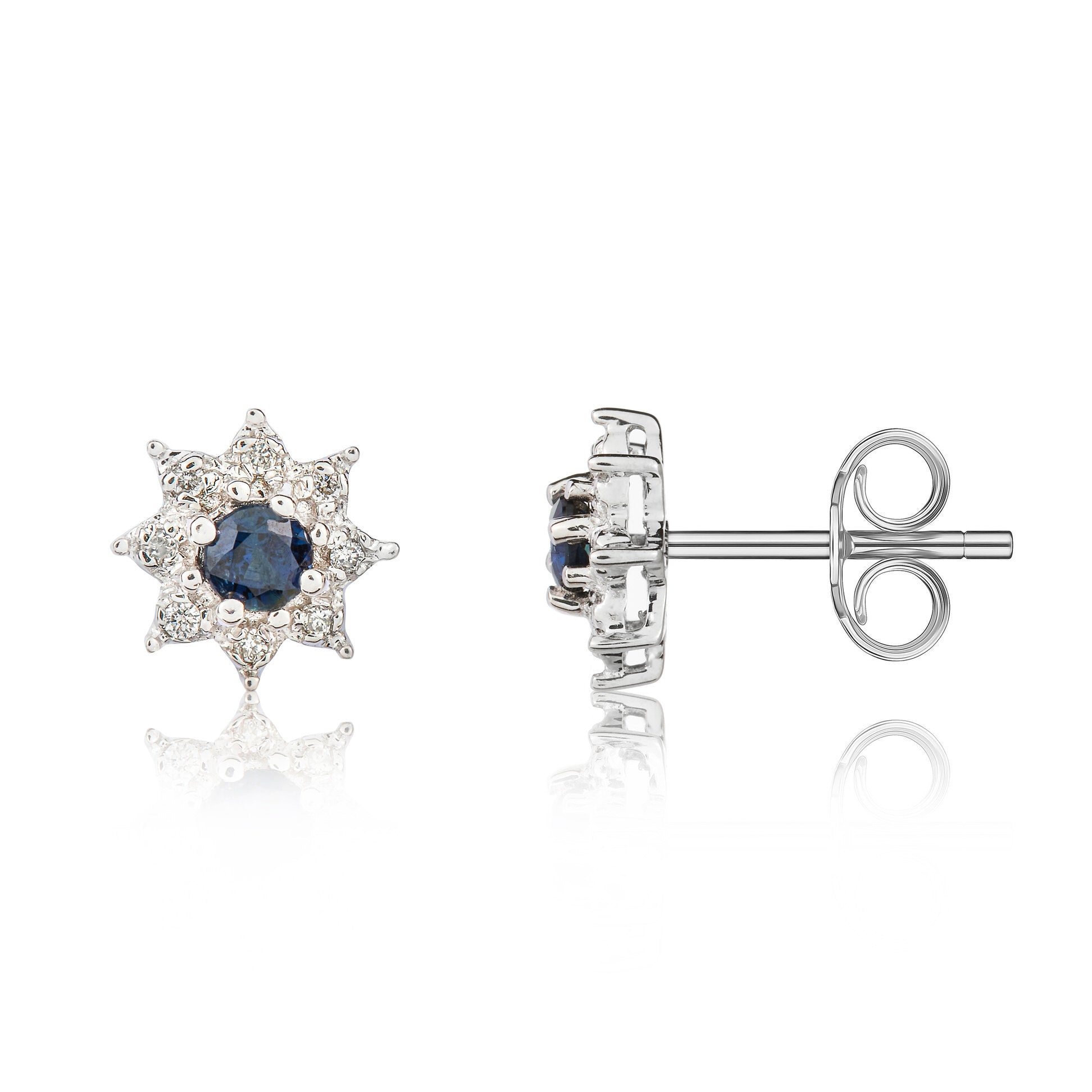 9CT White Gold Round Sapphire & Diamond Cluster Earrings 3mm
