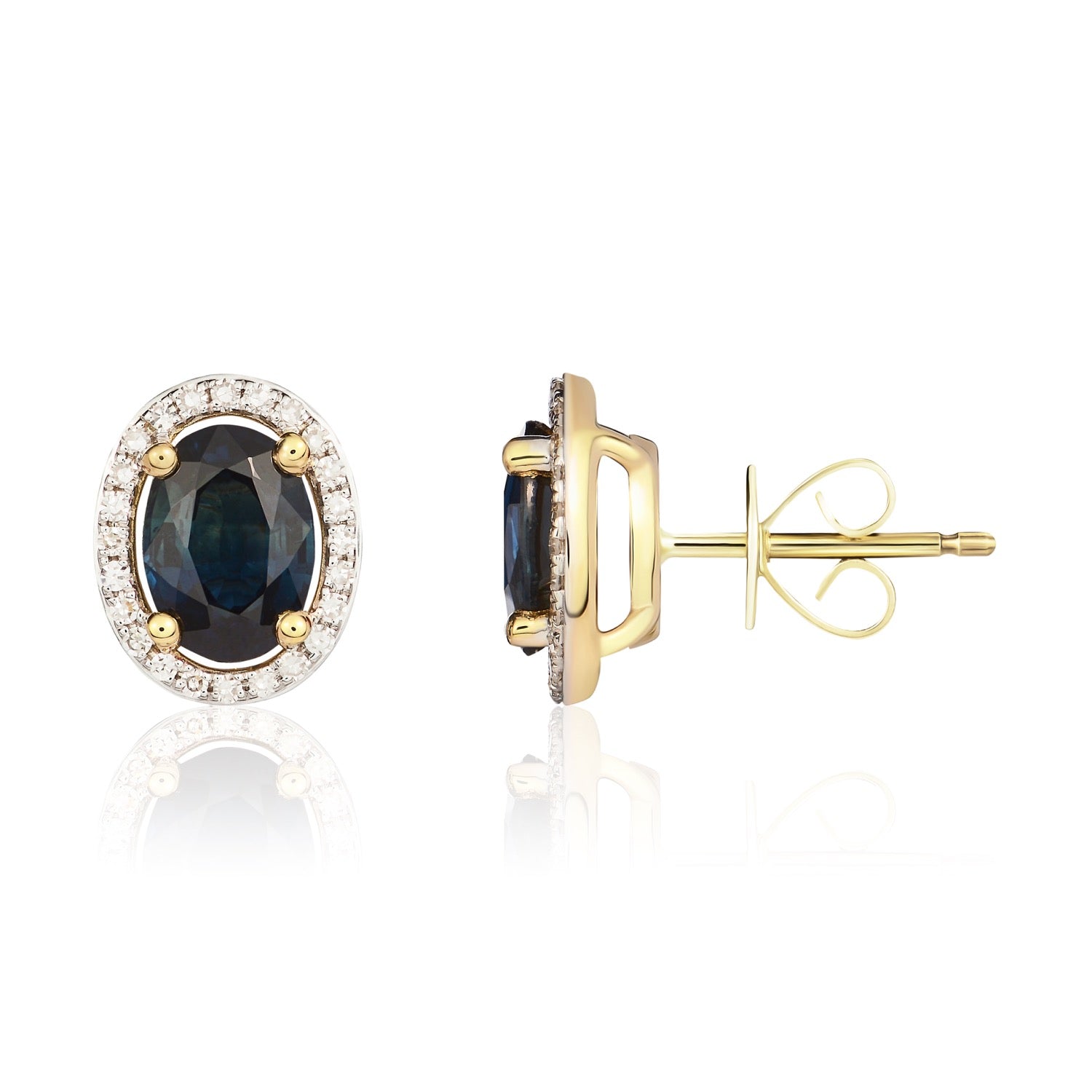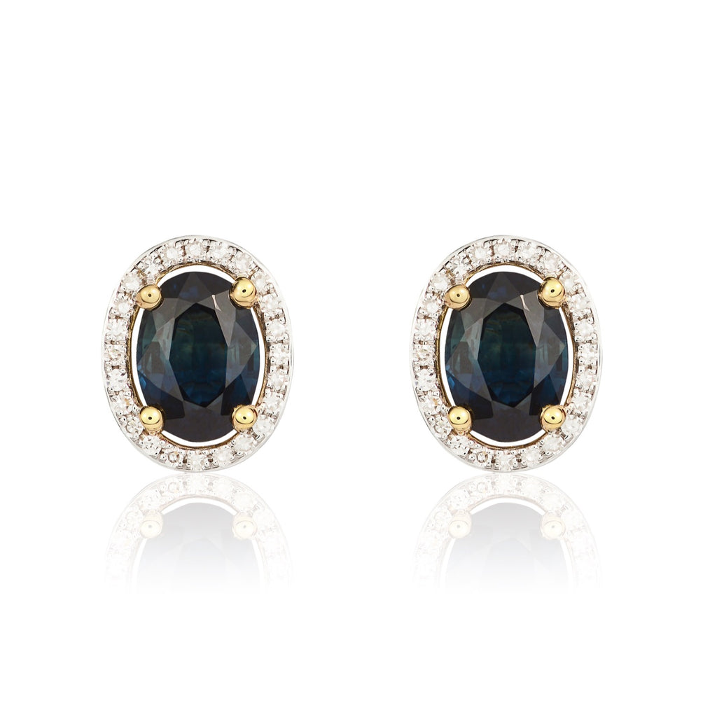 9CT Yellow Gold Oval Sapphire & Diamond Halo Cluster Earrings 7x5mm