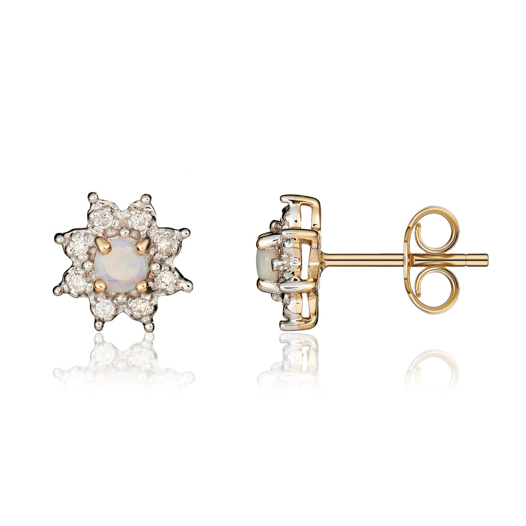 9CT Yellow Gold Round Opal & Diamond Cluster Earrings 3mm